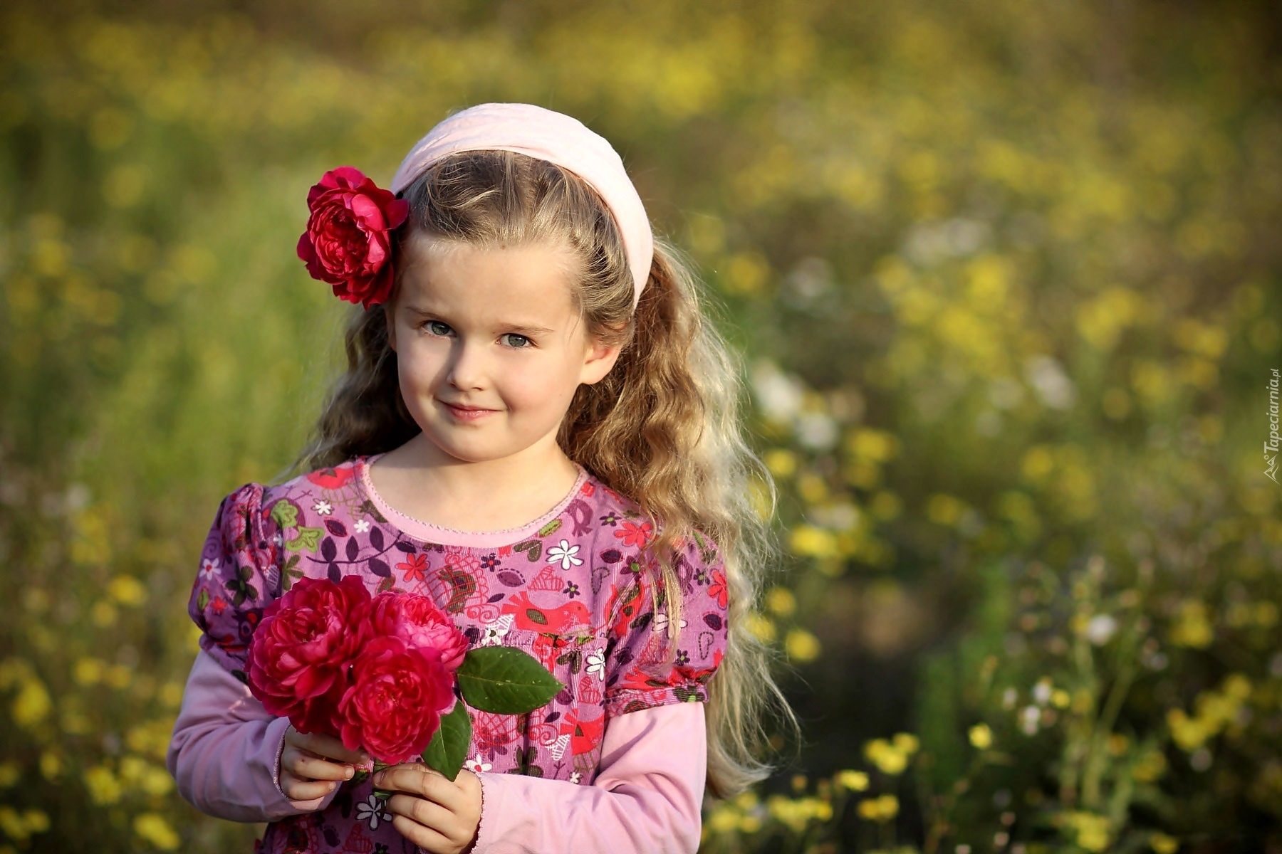 Edytor tapety: Dziewczynka, Bukiecik, Róż, Zbliżenie, Rozmycie