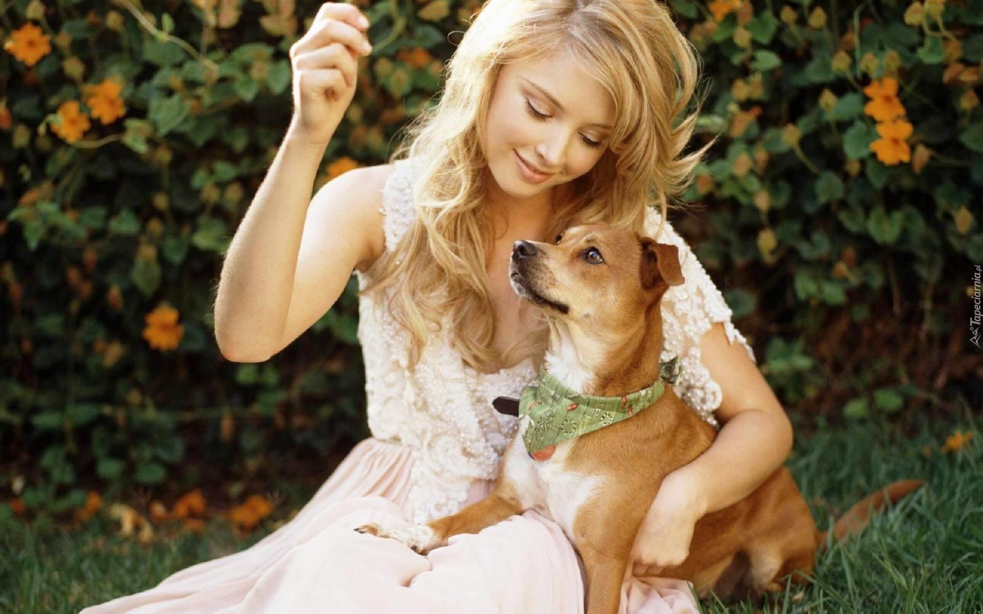 Edytor tapety: Elisabeth Harnois, Blondynka, Piesek