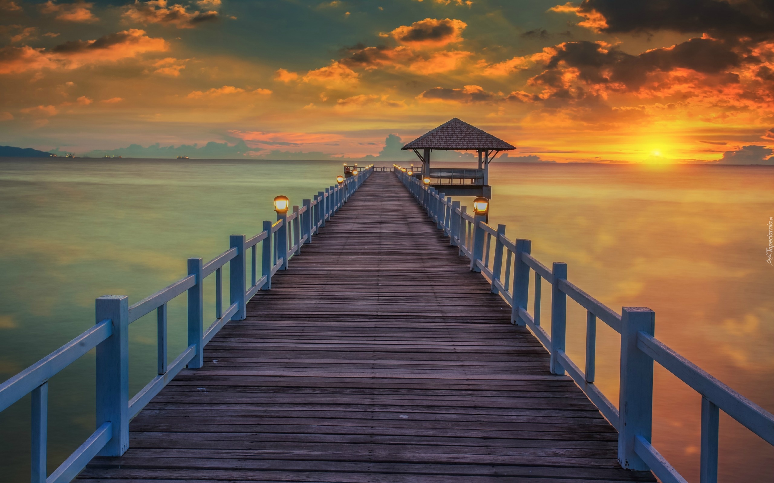Edytor tapety: Pomost, Morze, Chmury, Zachód, Słońca