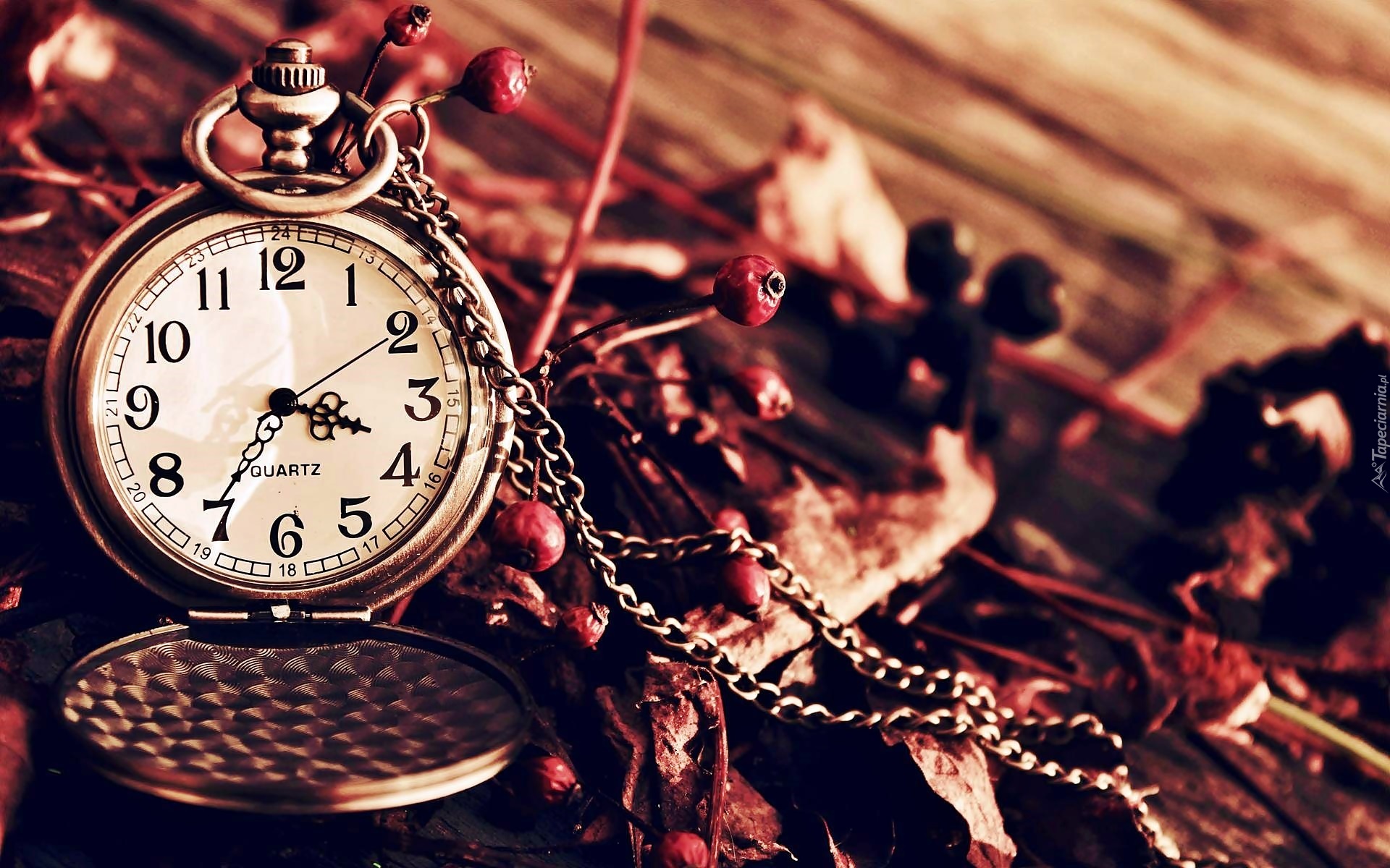 Edytor tapety: Zegarek, Retro, Łańcuszek, Zeschłe, Gałązki, Rozmycie