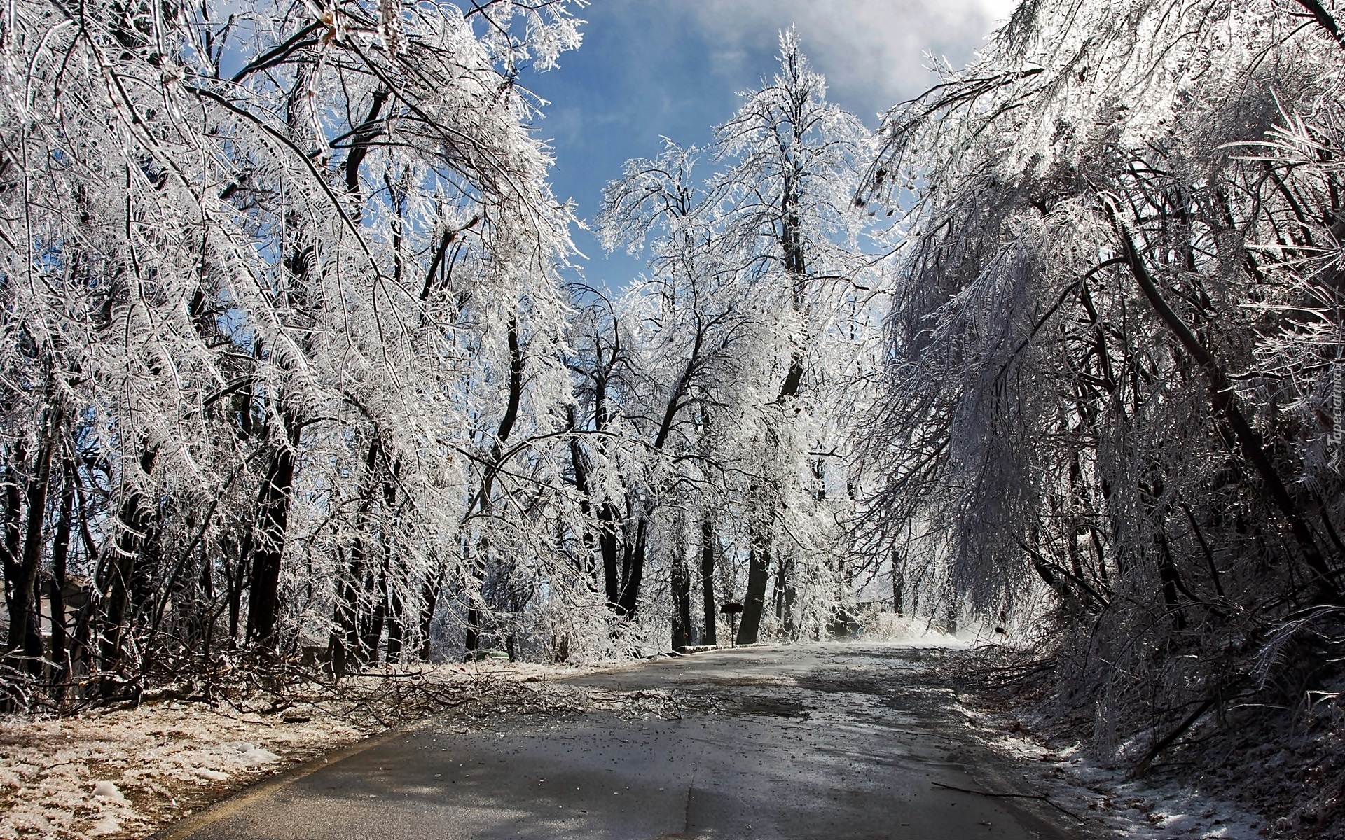 Edytor tapety: Droga, Ośnieżone, Drzewa, Światło, Cień