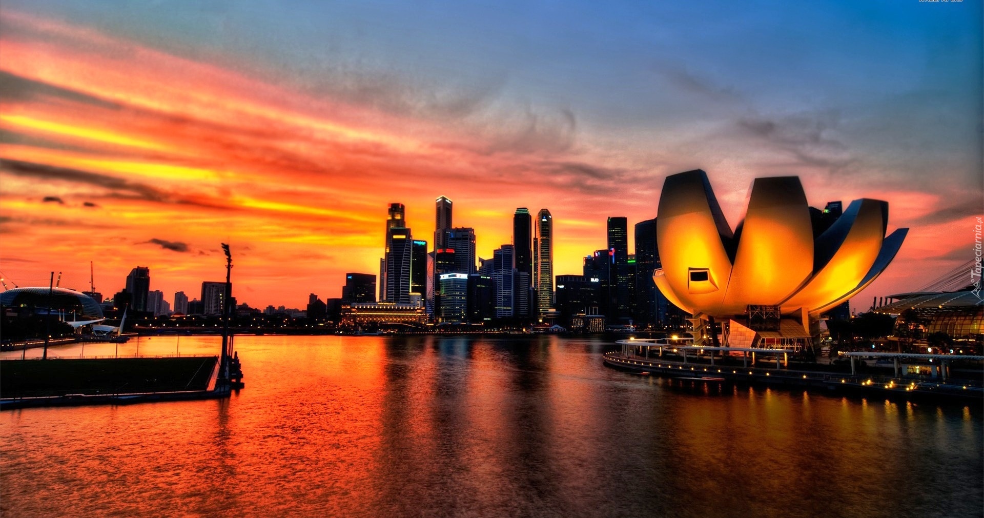 Edytor tapety: Singapur, Zachód Słońca, Muzeum ArtScience Museum