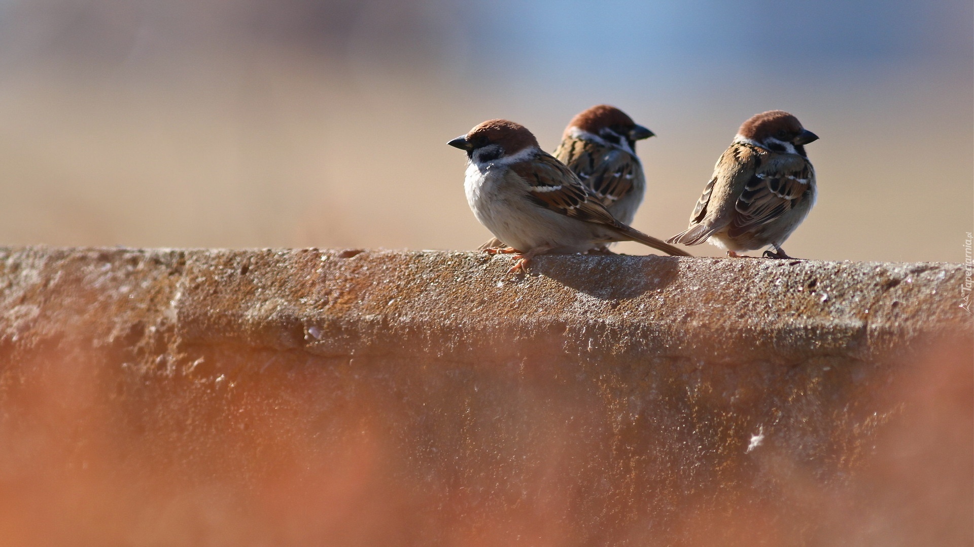 Edytor tapety: Trzy, Wróbelki, Murek