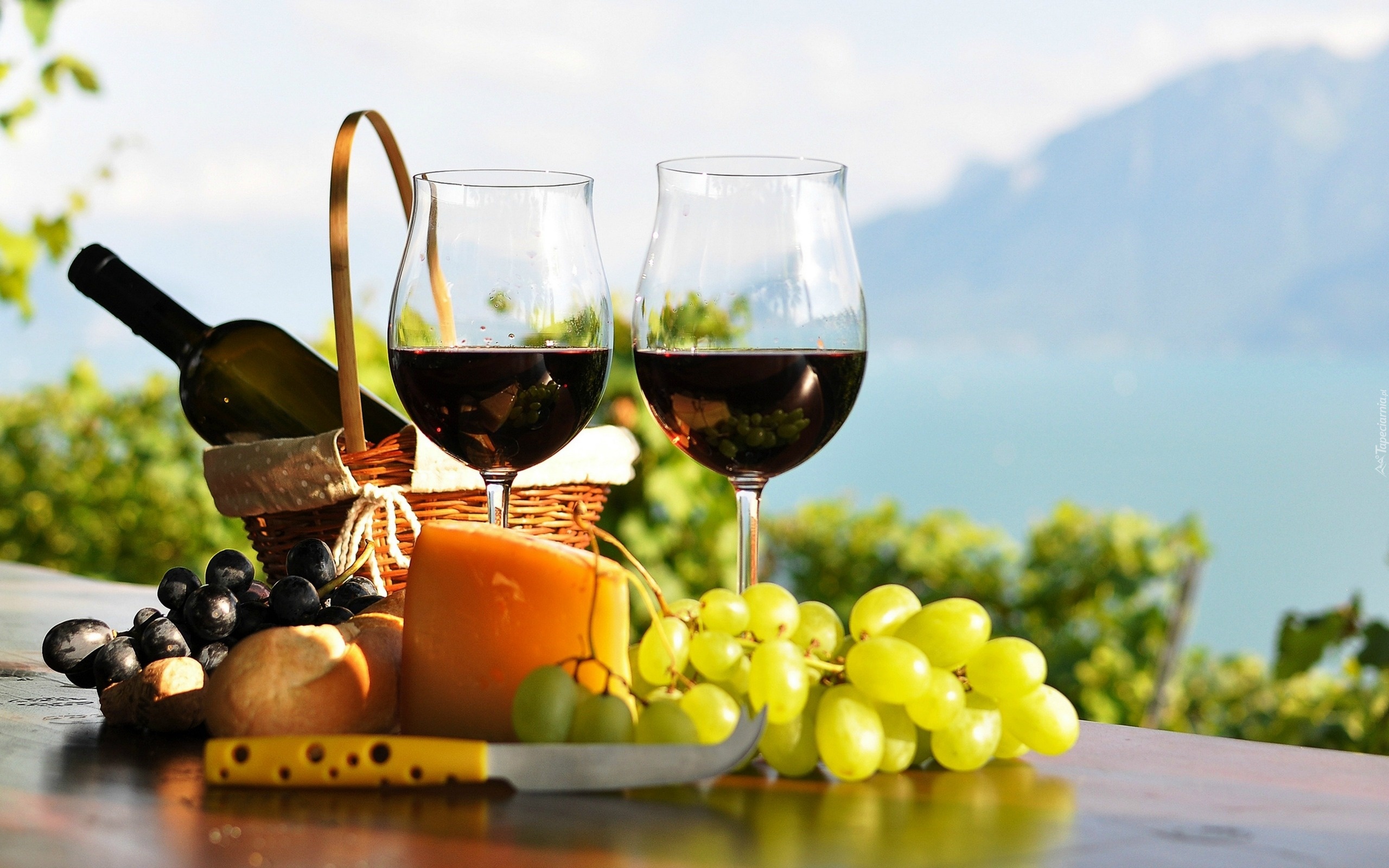 Edytor tapety: Winogrona, Koszyk, Lampki, Czerwonego, Wina