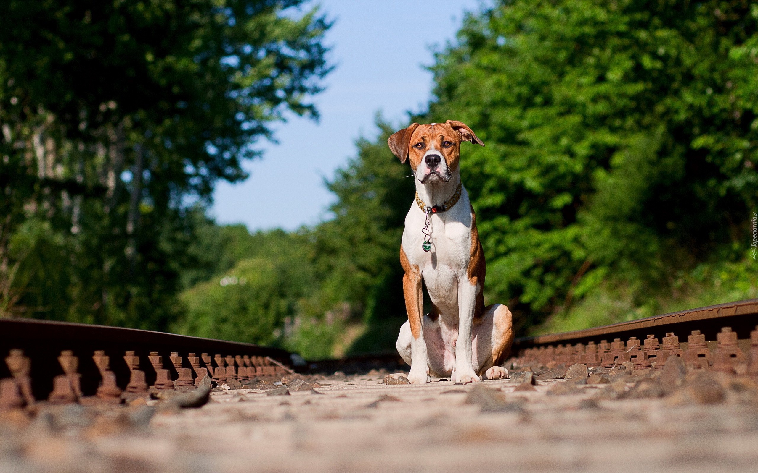 Edytor tapety: Siedzący, Pies, Tory, Drzewa
