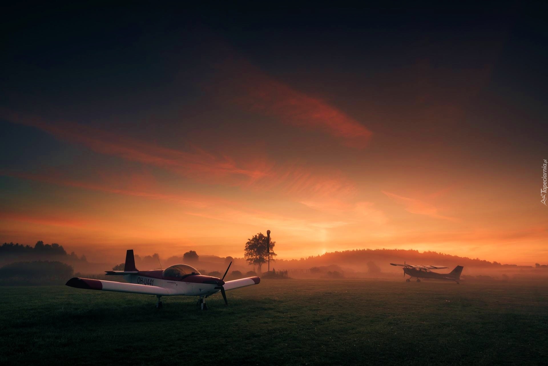 Edytor tapety: Zachód, Słońca, Mgła, Awionetki