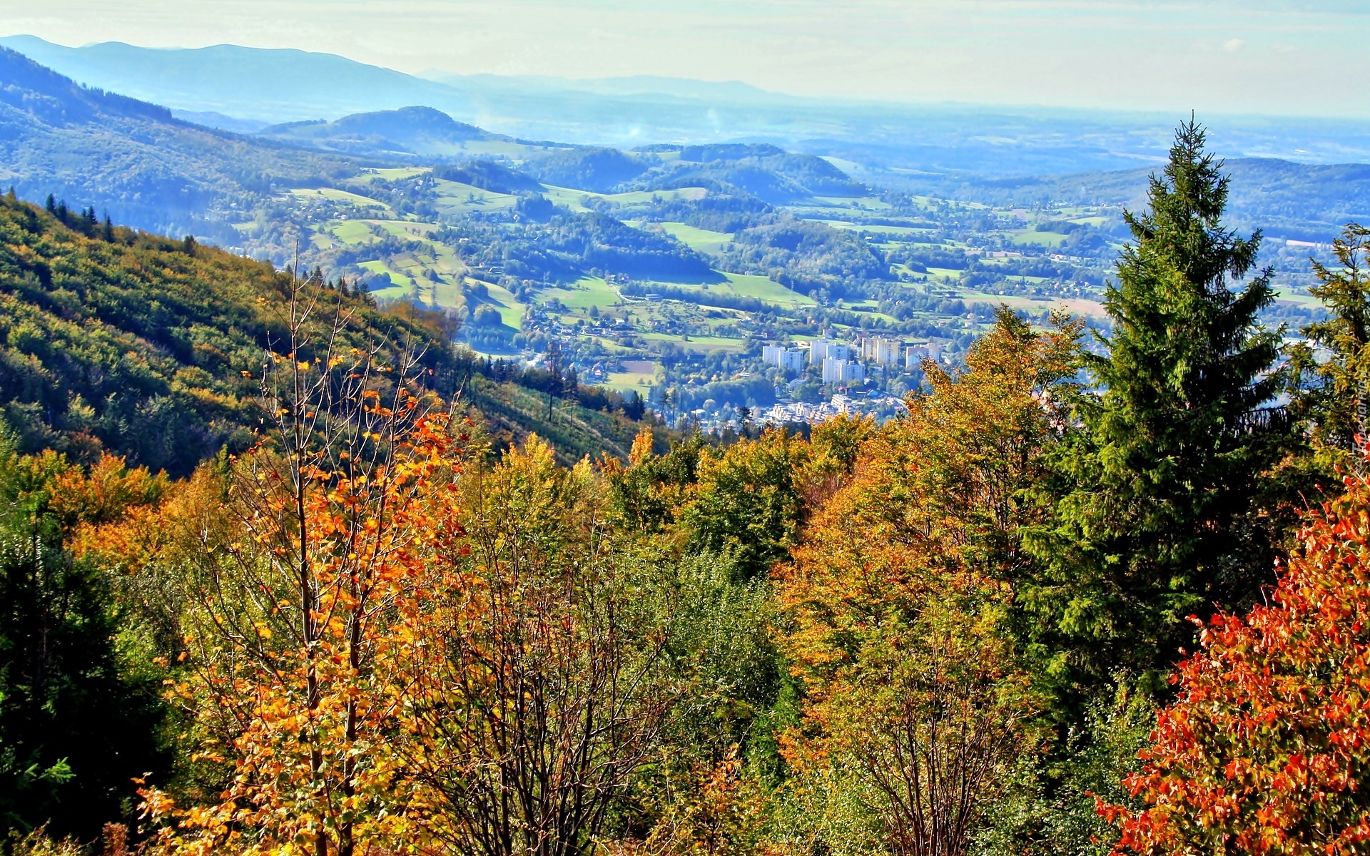 Edytor tapety: Beskid, Śląski, W Dolinie, Panorama, Ustronia, Góry, Las