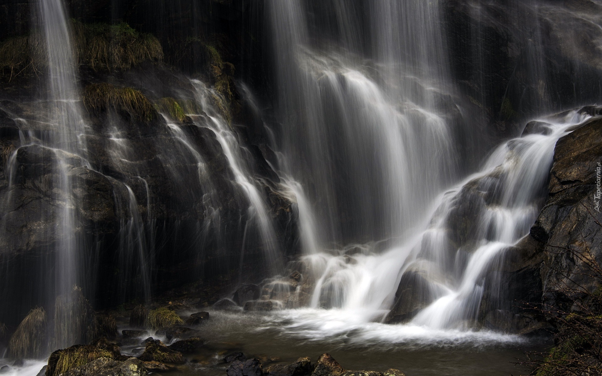 Edytor tapety: Wodospad, Skały