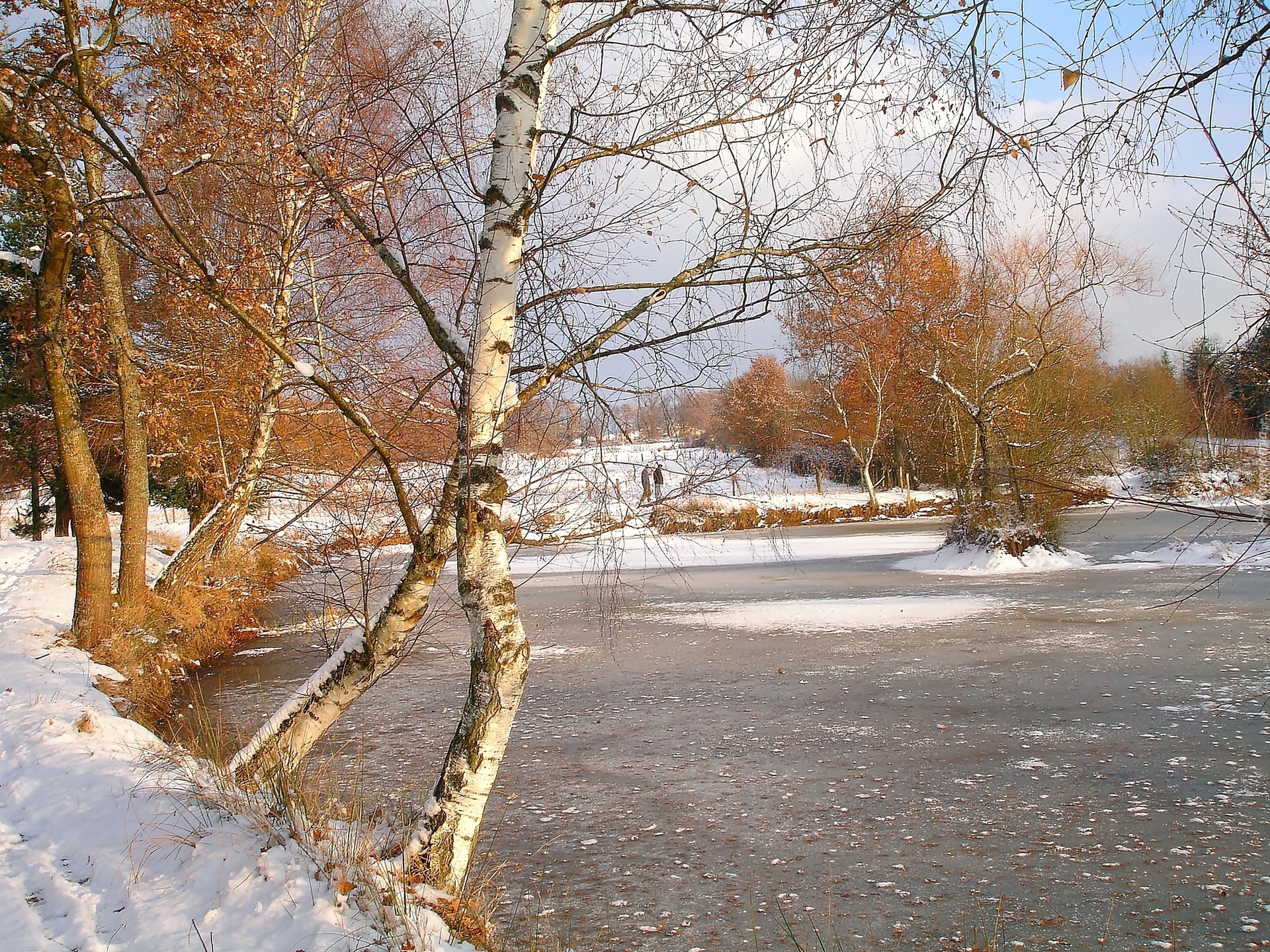 Edytor tapety: Zima, Zachód, Słońca, Park, Jezioro