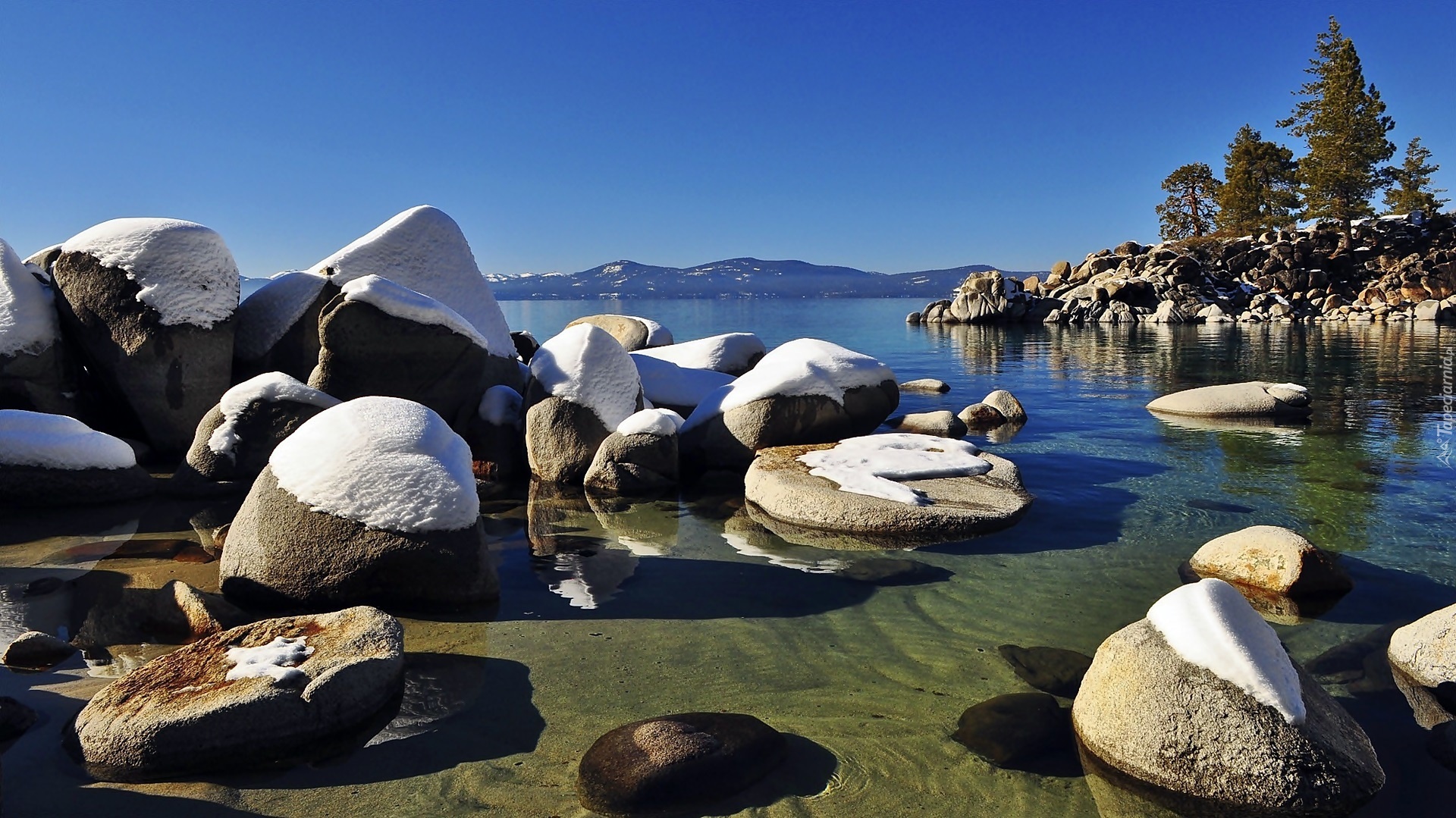 Edytor tapety: Nevada, Jezioro, Tahoe, Ośnieżone, Kamienie