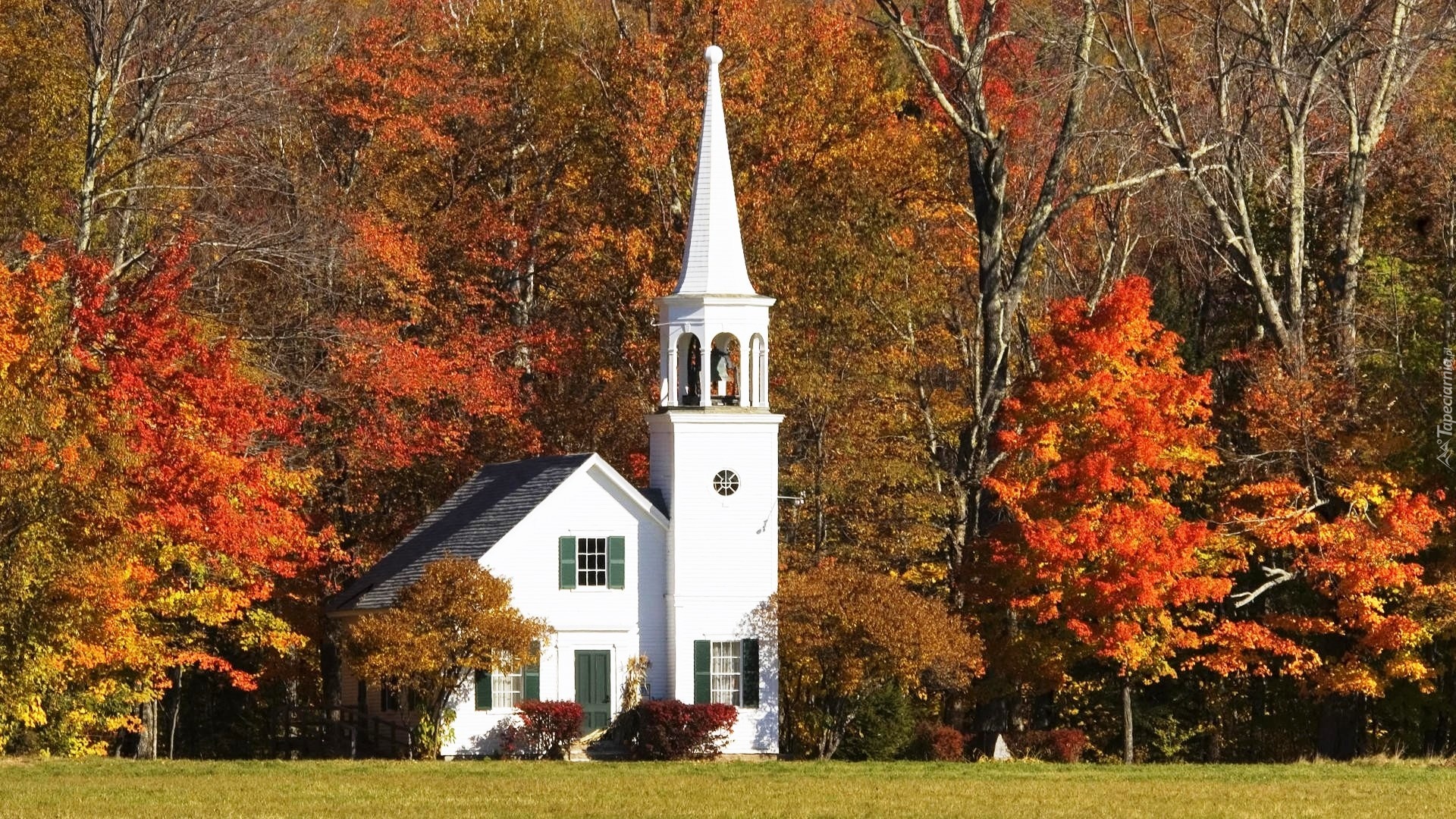 Edytor tapety: Kościółek, Drzewa, Jesień