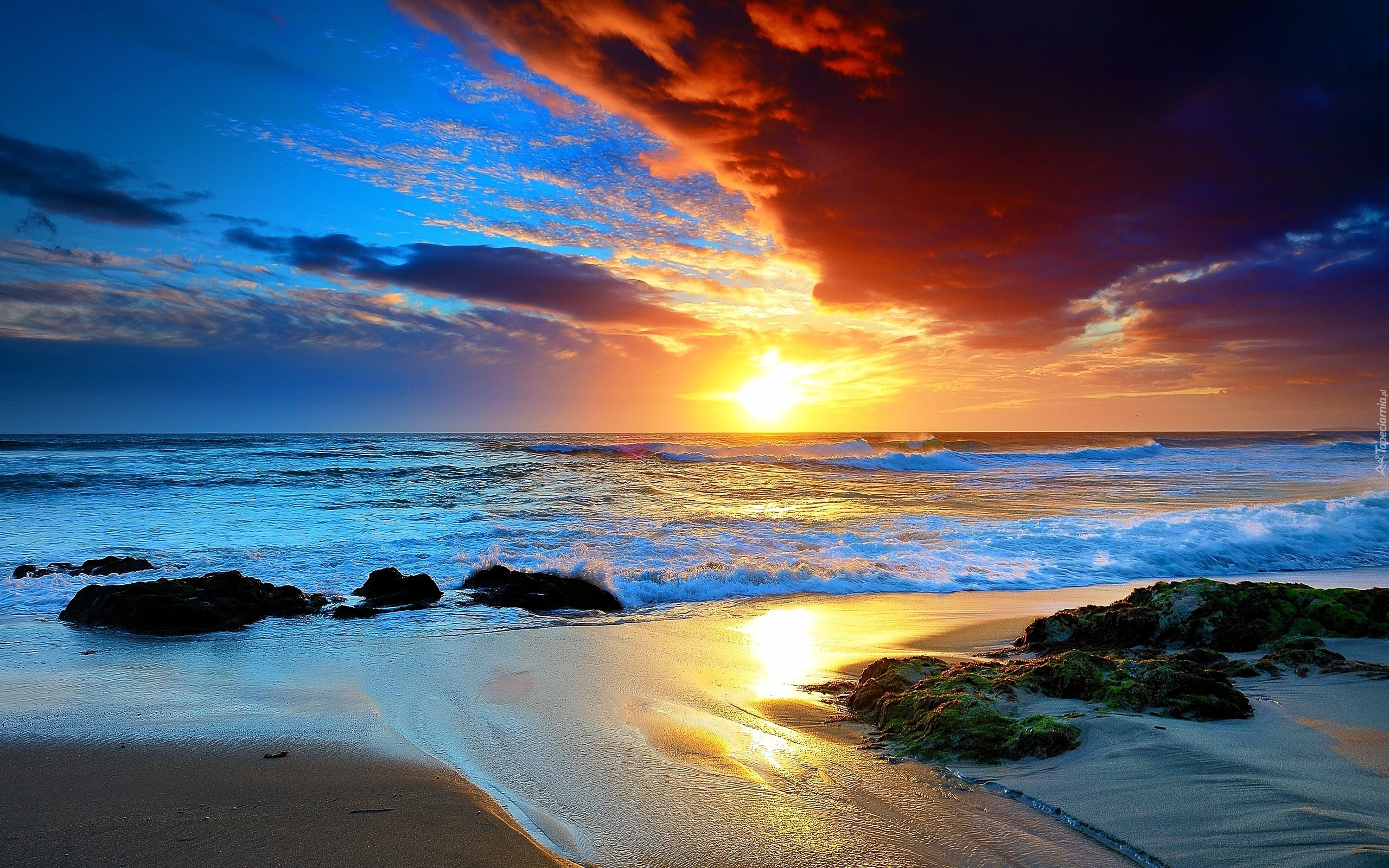 Edytor tapety: Morze, Skały, Zachód Słońca