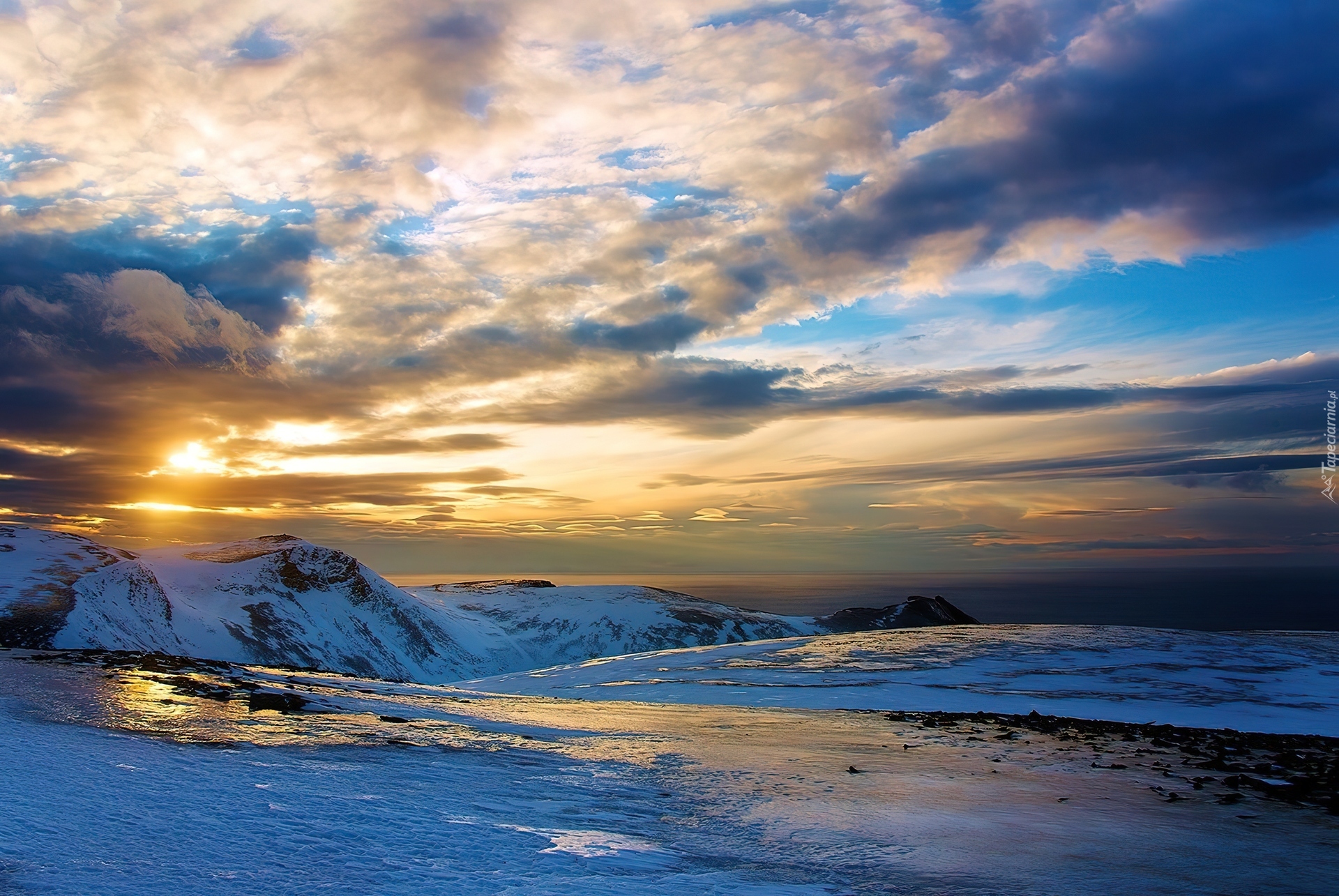 Edytor tapety: Zachód, Słońca, Góry, Niebo, Chmury