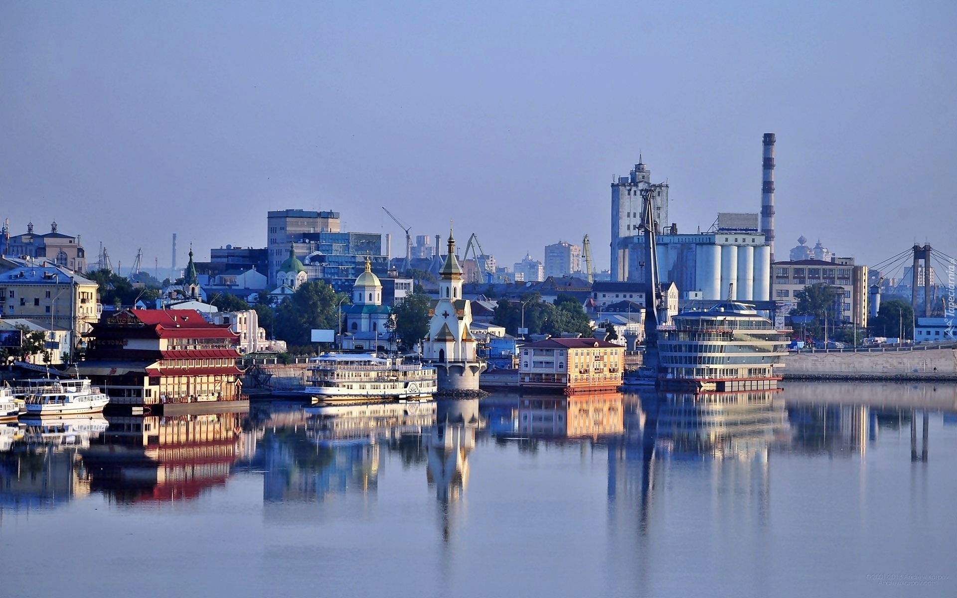 Edytor tapety: Panorama, Miasta, Dniepr, Statki, Nabrzeże, Odbicie