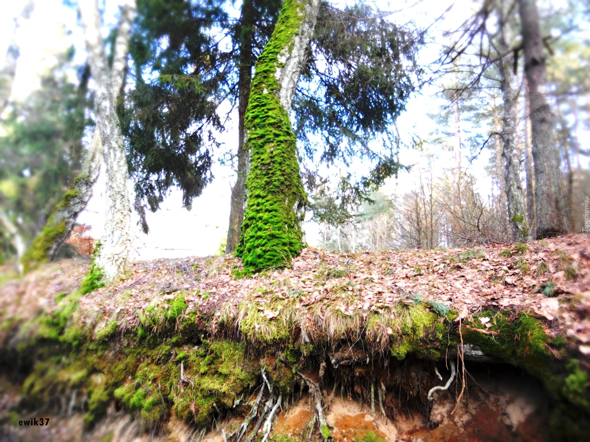 Edytor tapety: Las, Omszałe, Drzewo, Skarpa, Korzenie