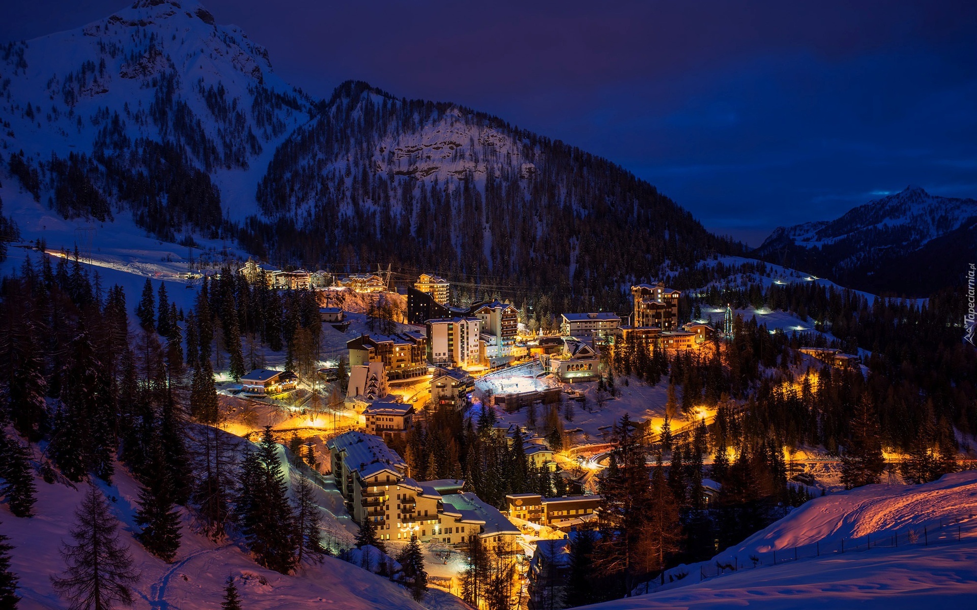 Edytor tapety: Bergamo, Lombardia, Miasteczko, Turystyczne, Góry, Lasy, Włochy, Zima