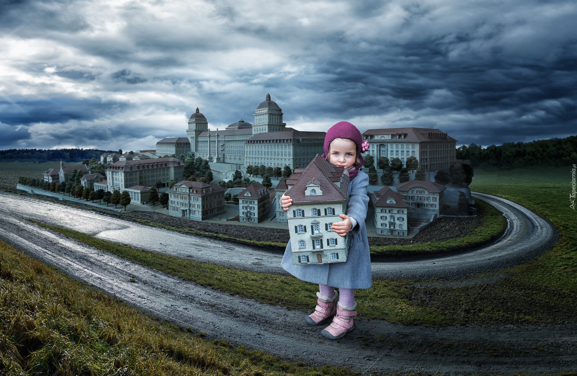 Edytor tapety: Dziecko, Droga, Budowle