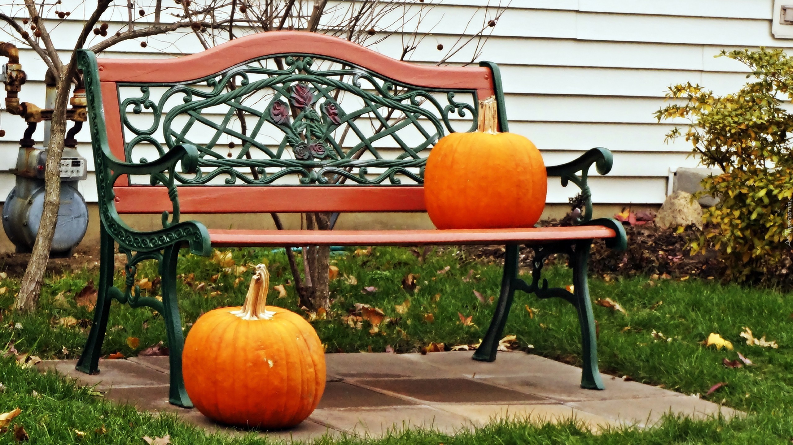 Edytor tapety: Ogród, Ławka, Dynie