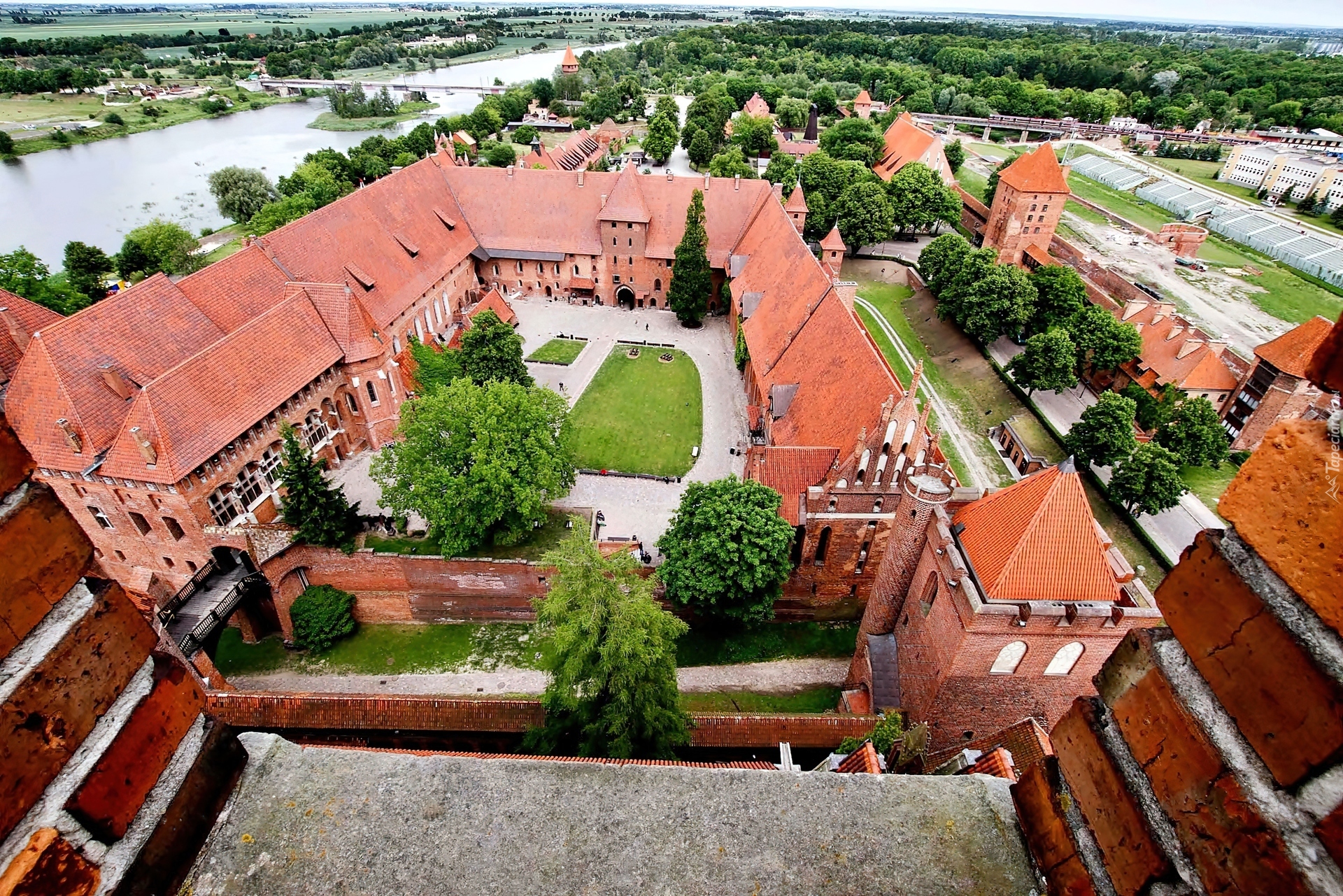 Edytor tapety: Malbork, Zamek, Rzeka, Nogat, Most, Las