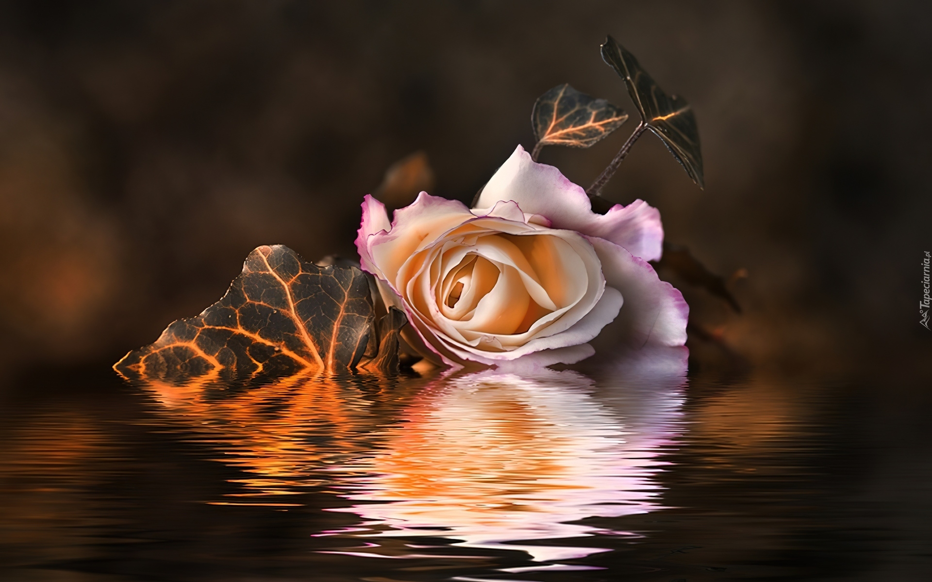 Edytor tapety: Róża, Bluszcz, Woda