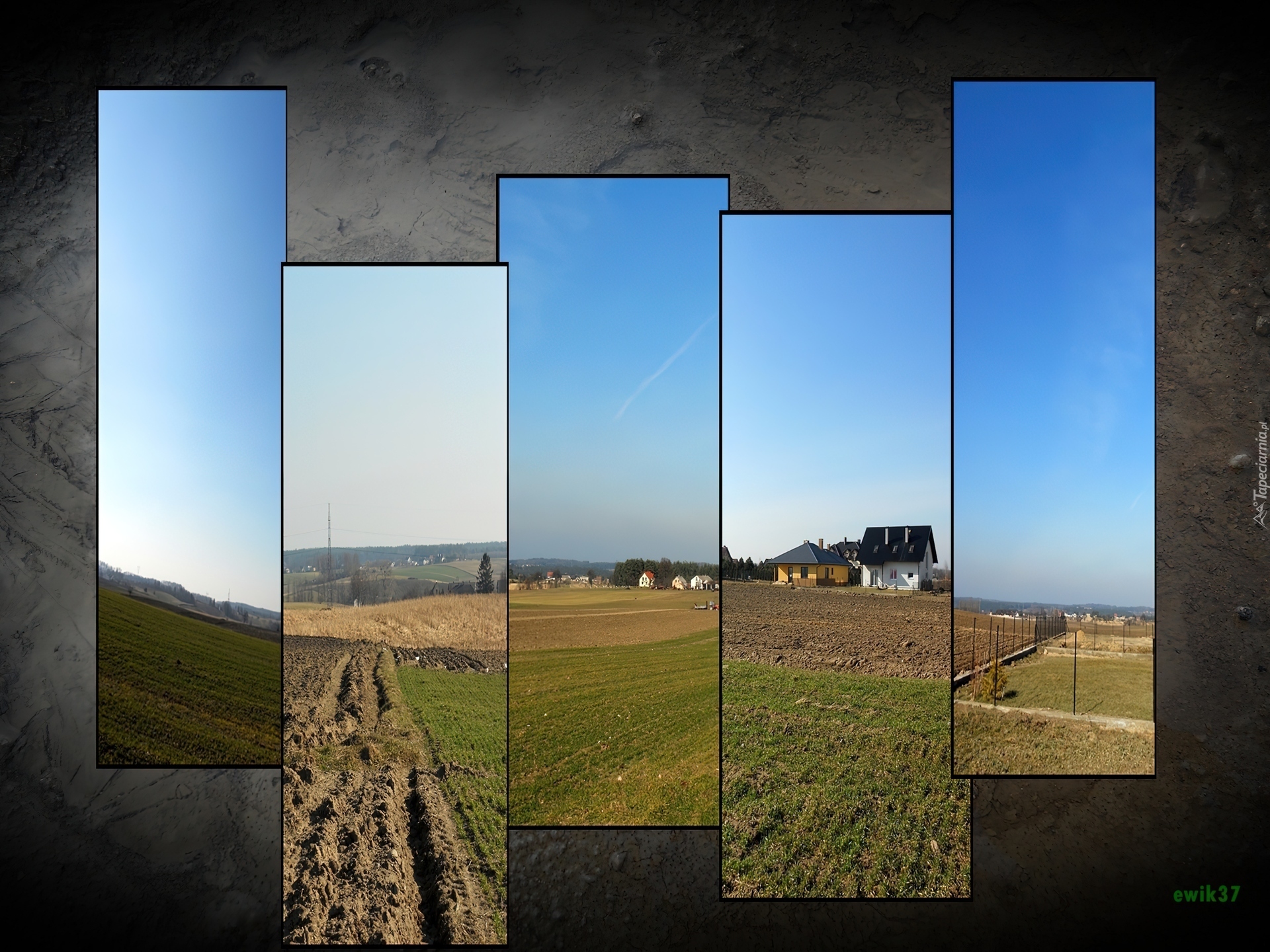 Edytor tapety: Pola, Farmy, Niebo, Domy, Grafika