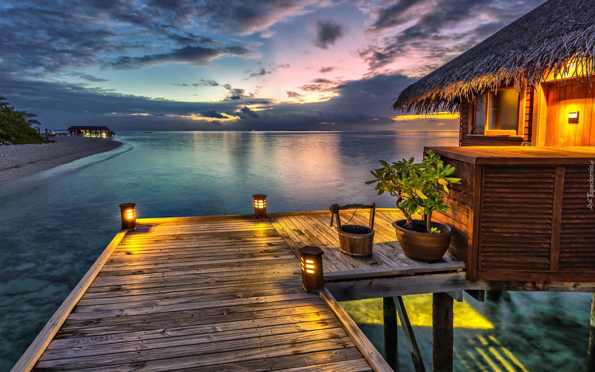 Edytor tapety: Dom, Na, Palach, Lampiony, Plaża, Morze, Tropiki