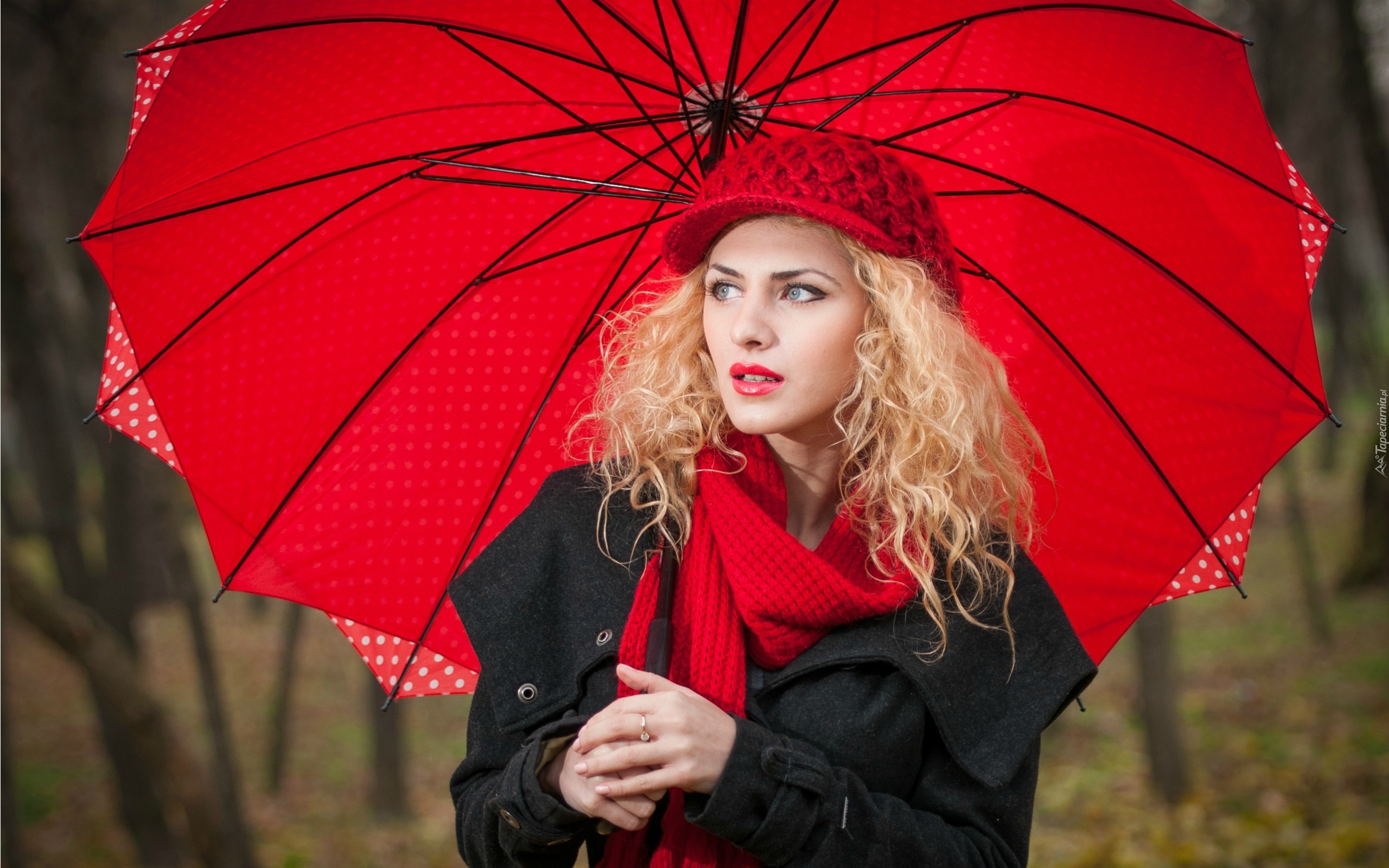 Edytor tapety: Blondynka, Modelka, Czapka, Parasol, Jesień