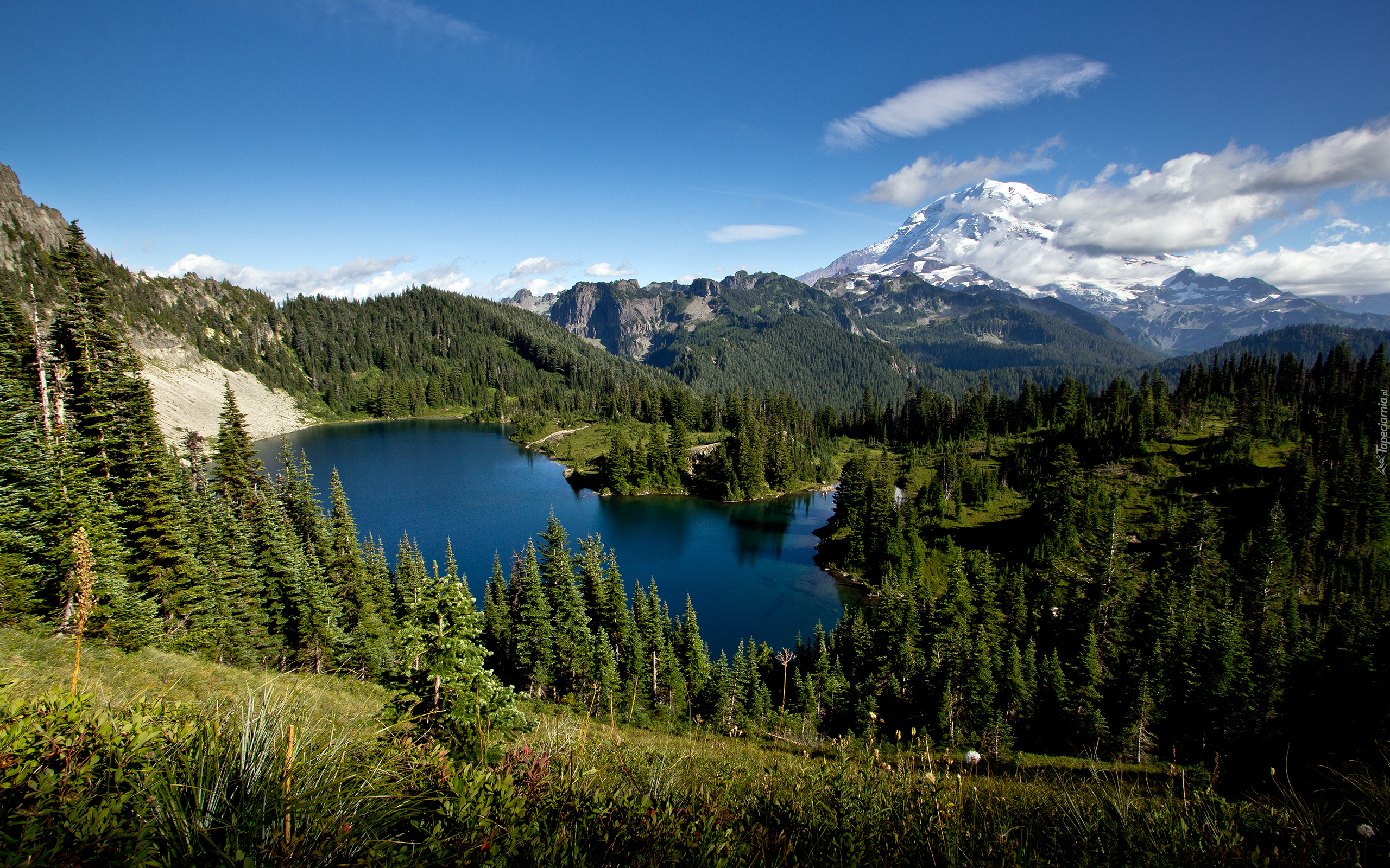 Edytor tapety: Stany Zjednoczone, Stan Waszyngton, Park Narodowy Mount Rainier, Stratowulkan Mont Rainier, Jezioro Eunice, Góry