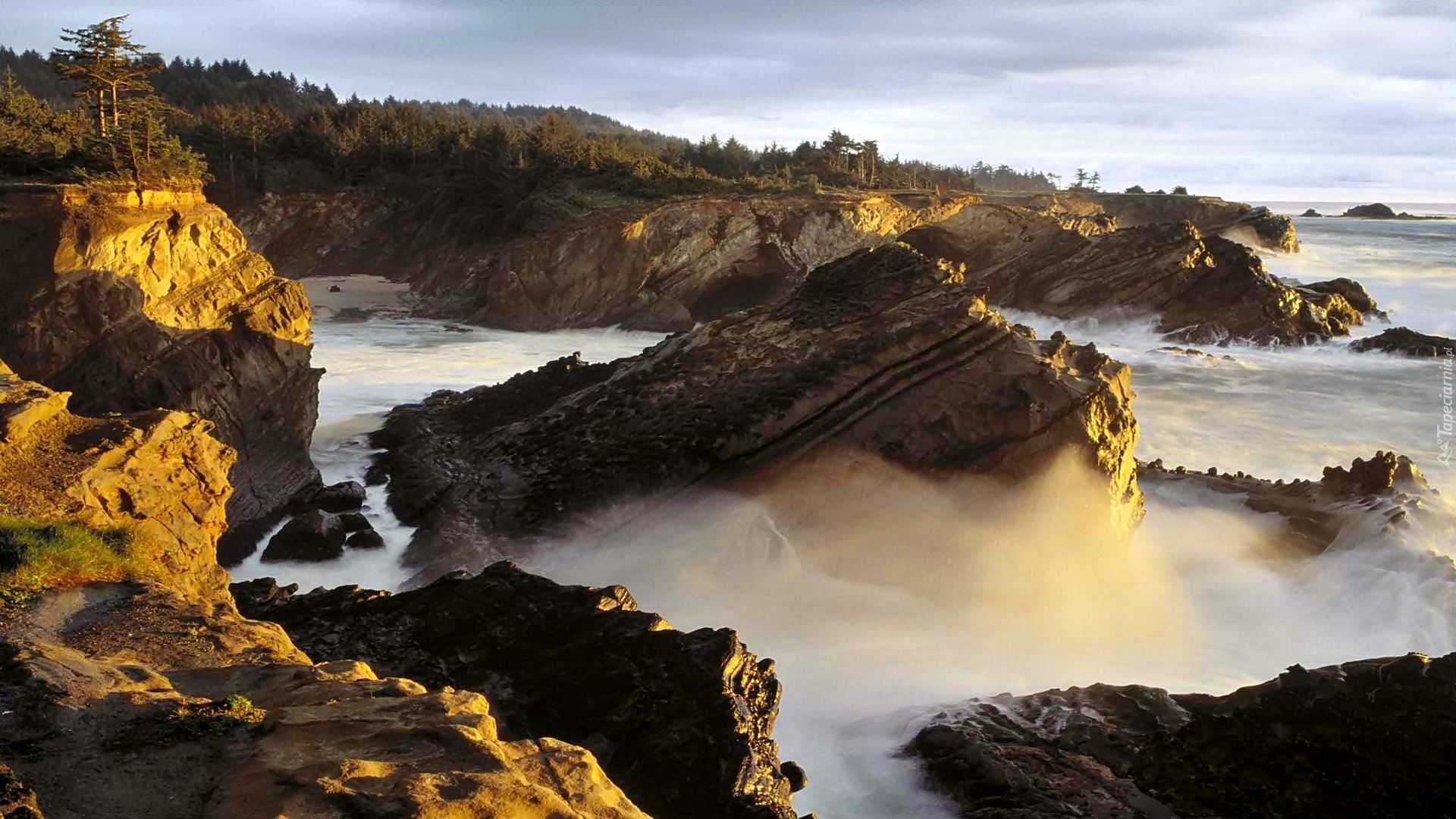 Edytor tapety: Oregon, Świt, Morze, Wybrzeże, Las, Skały