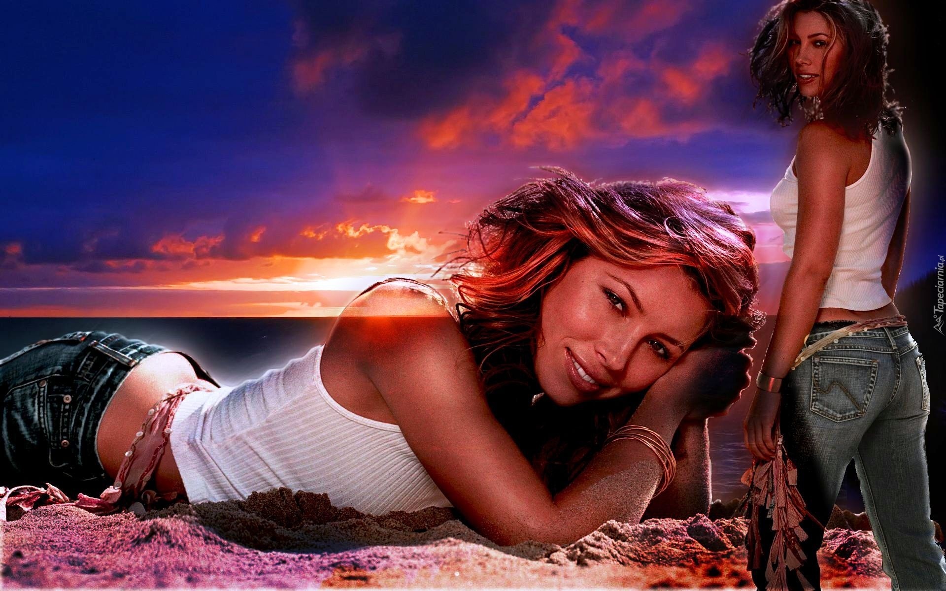 Edytor tapety: Jessica Biel, Morze, Zachód Słońca
