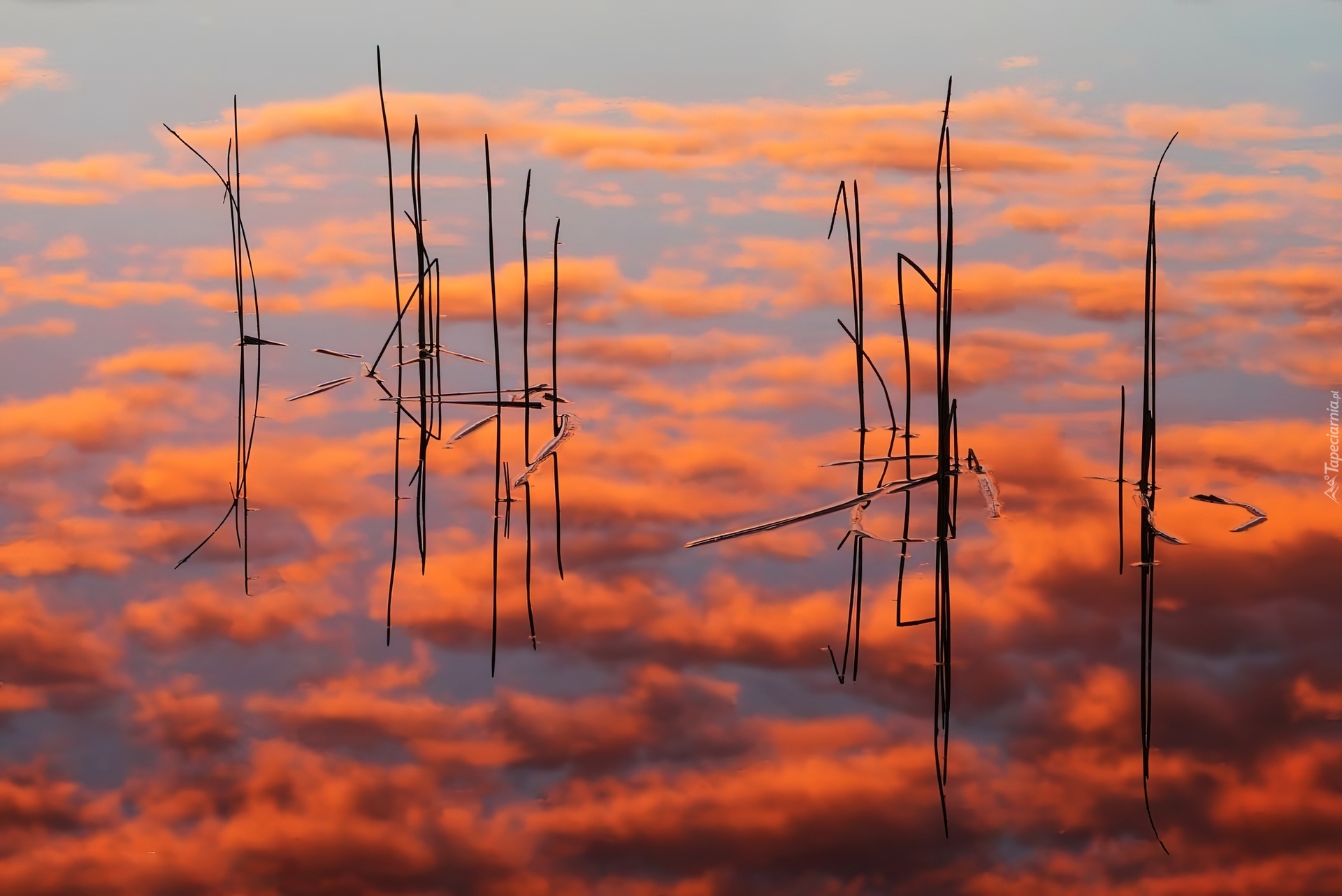 Edytor tapety: Jezioro, Trzciny, Chmury, Odbicie