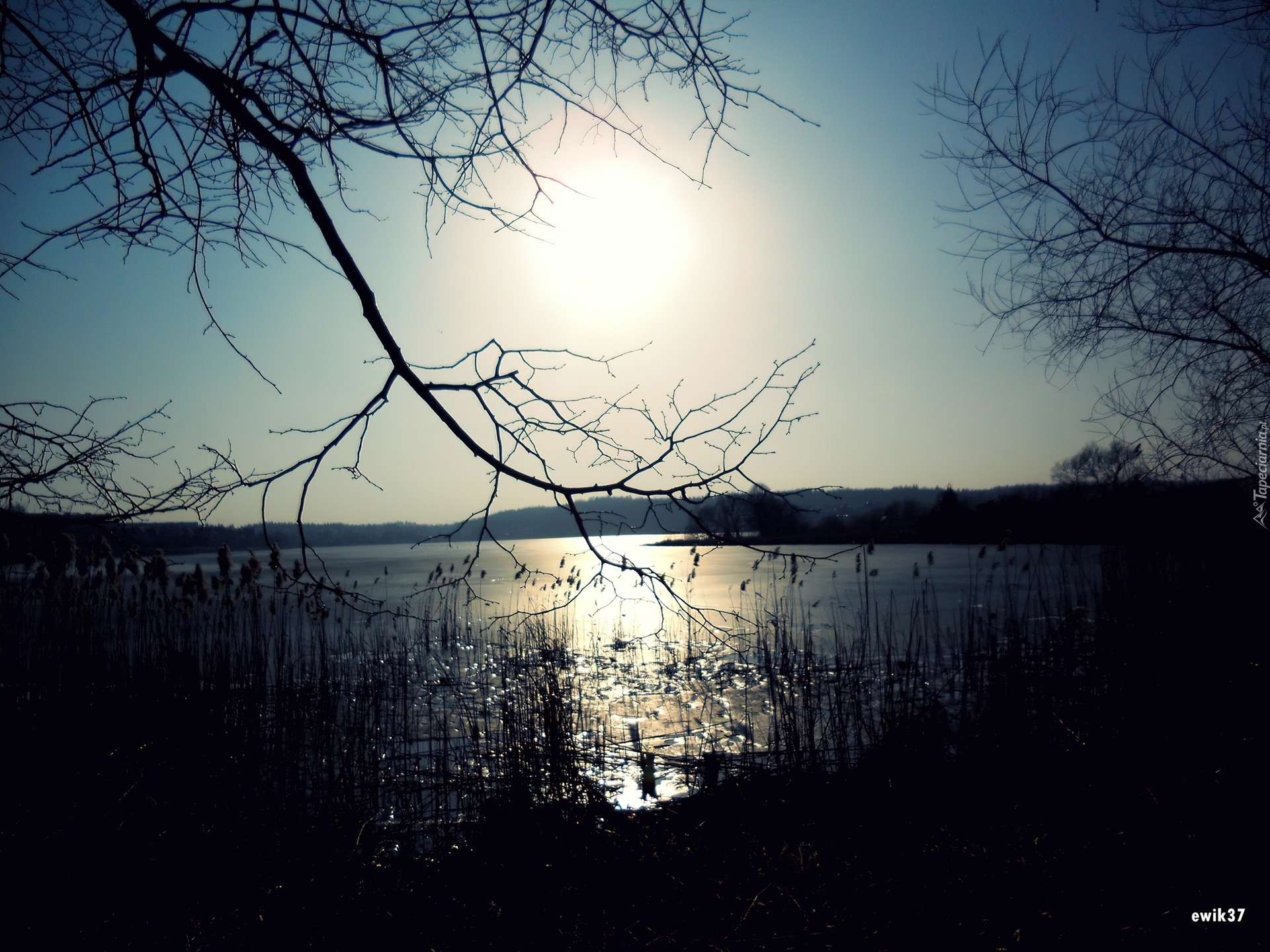 Edytor tapety: Sitowie, Jezioro, Drzewa, Słońce