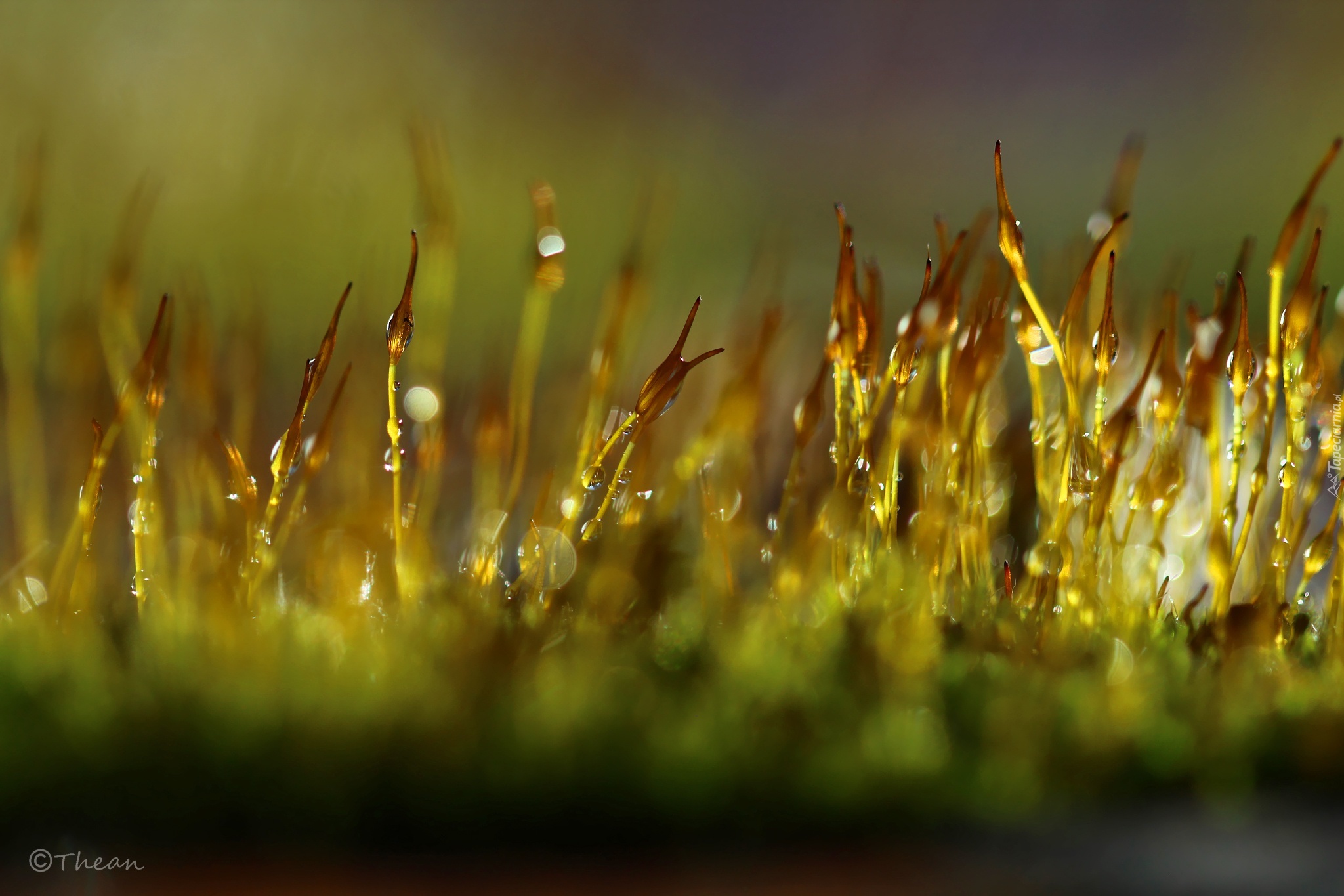 Edytor tapety: Mchy, Porosty, Źdźbła, Krople, Bokeh, Makro