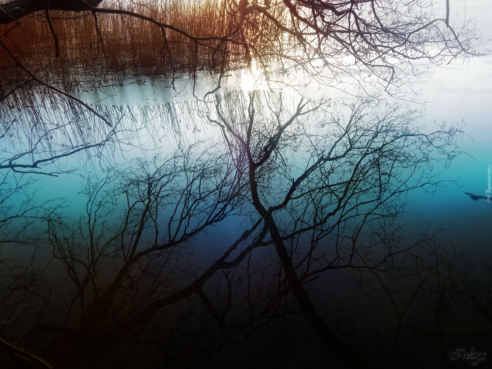 Edytor tapety: Woda, Gałęzie, Odbicie