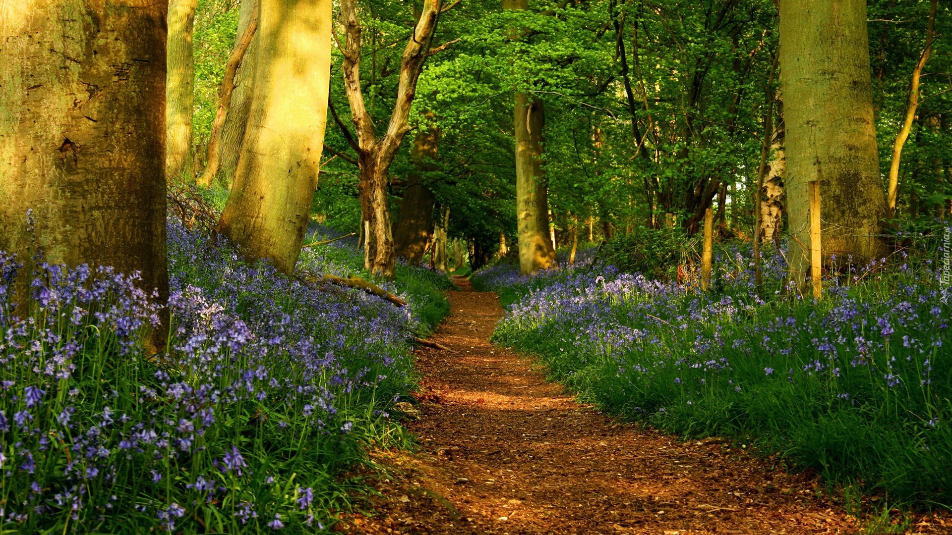 Edytor tapety: Las, Dróżka, Leśne, Kwiaty