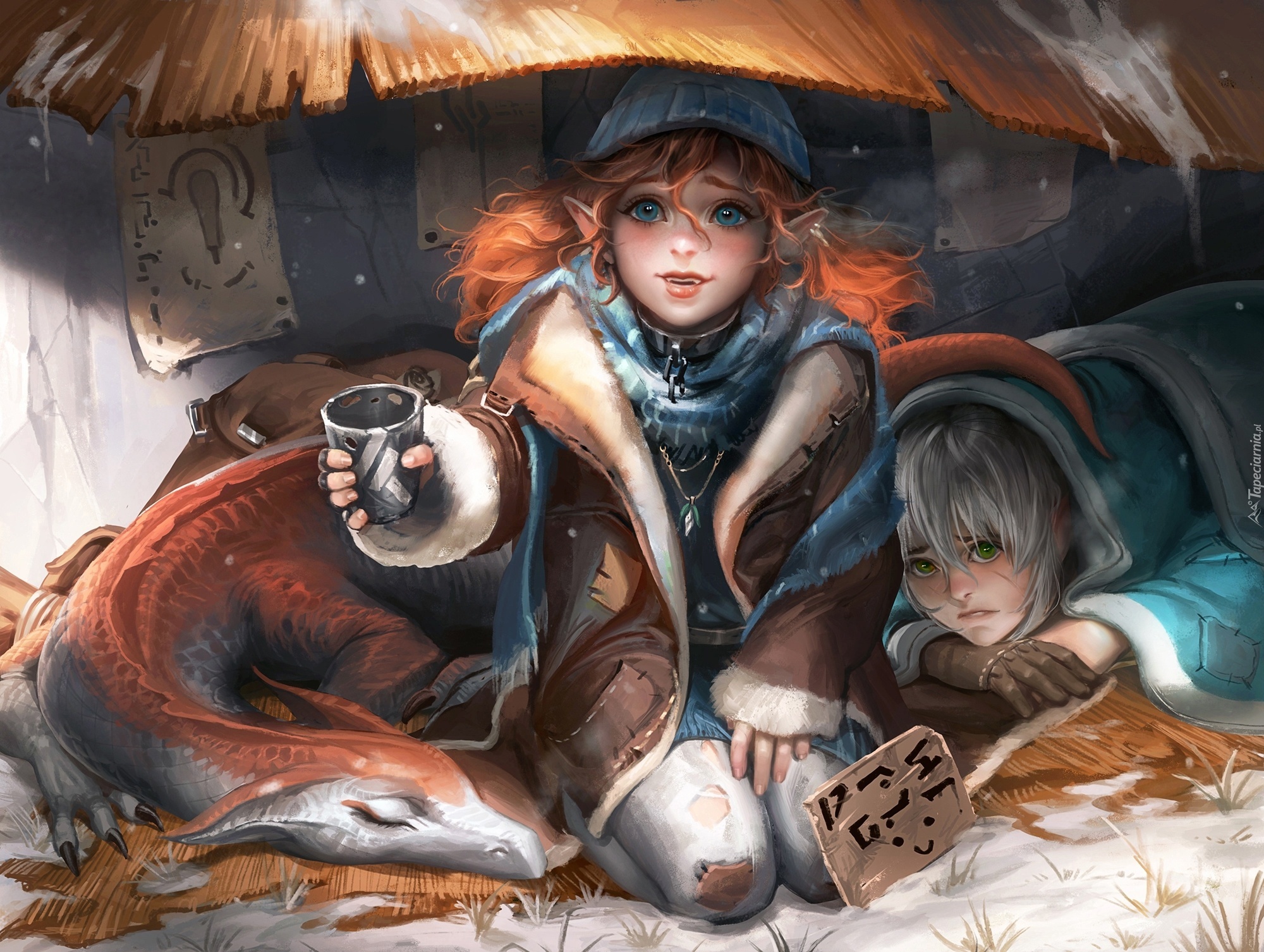 Edytor tapety: Sakimichan, Smok, Dziewczyna, Chłopak