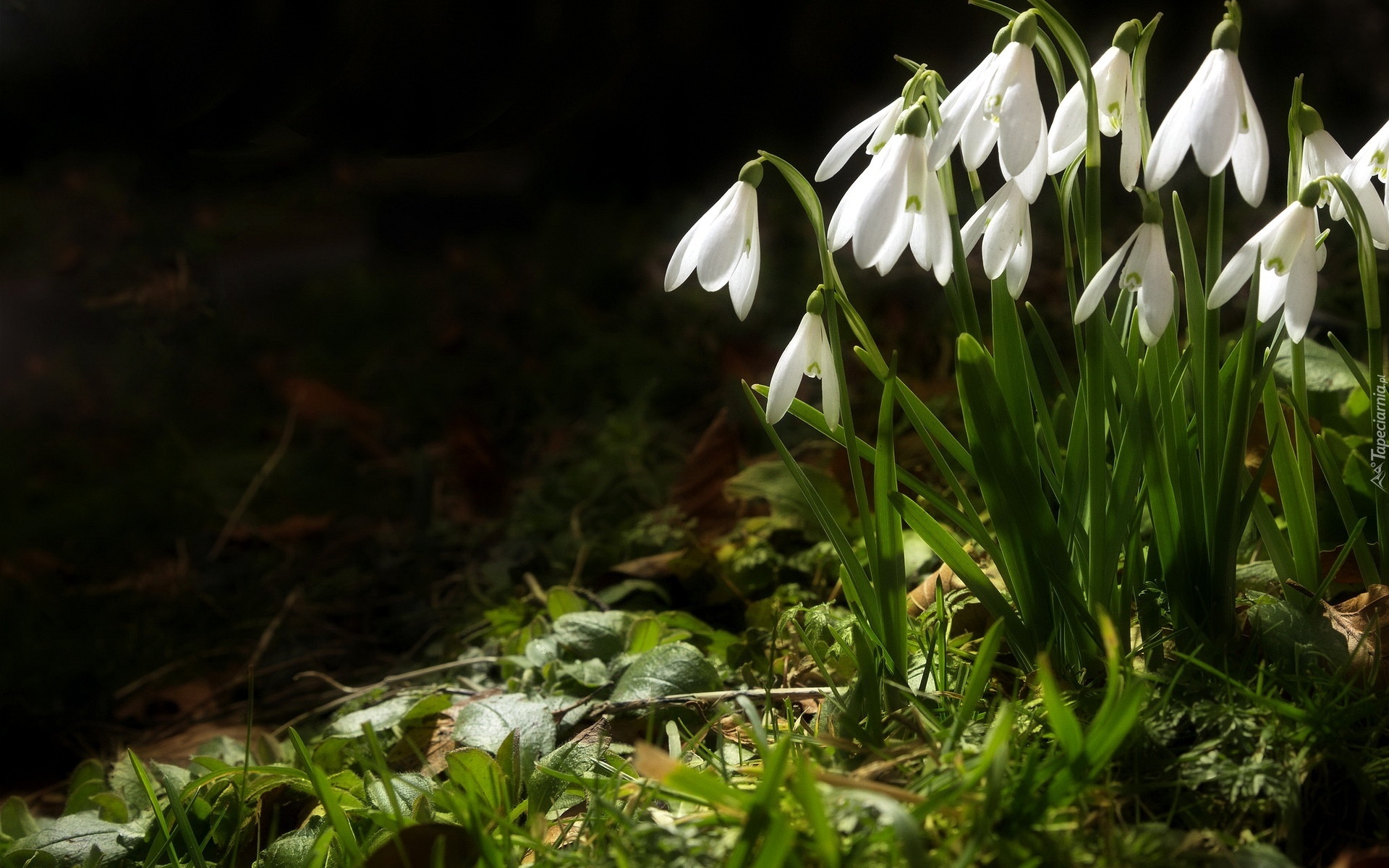 Edytor tapety: Przebiśniegi, Trawa, Las