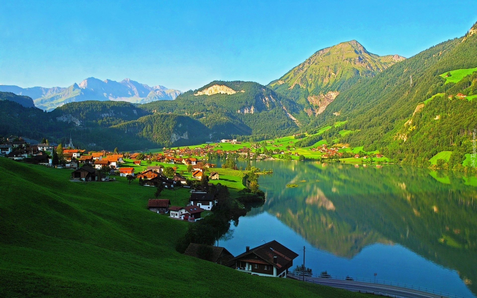Edytor tapety: Domy, Góry, Jezioro, Szwajcaria
