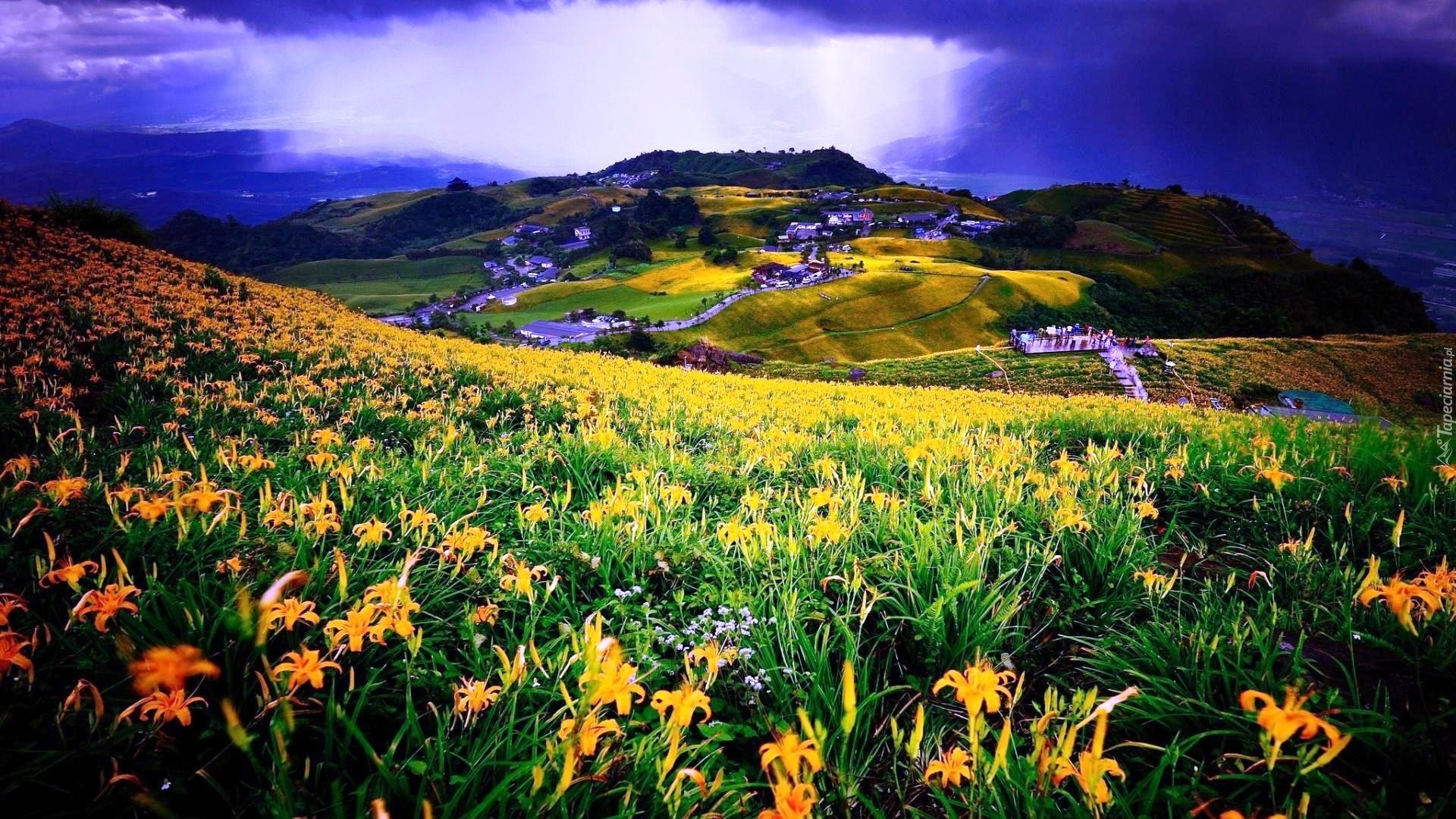 Edytor tapety: Łąka, Kwiatki, Wzgórza