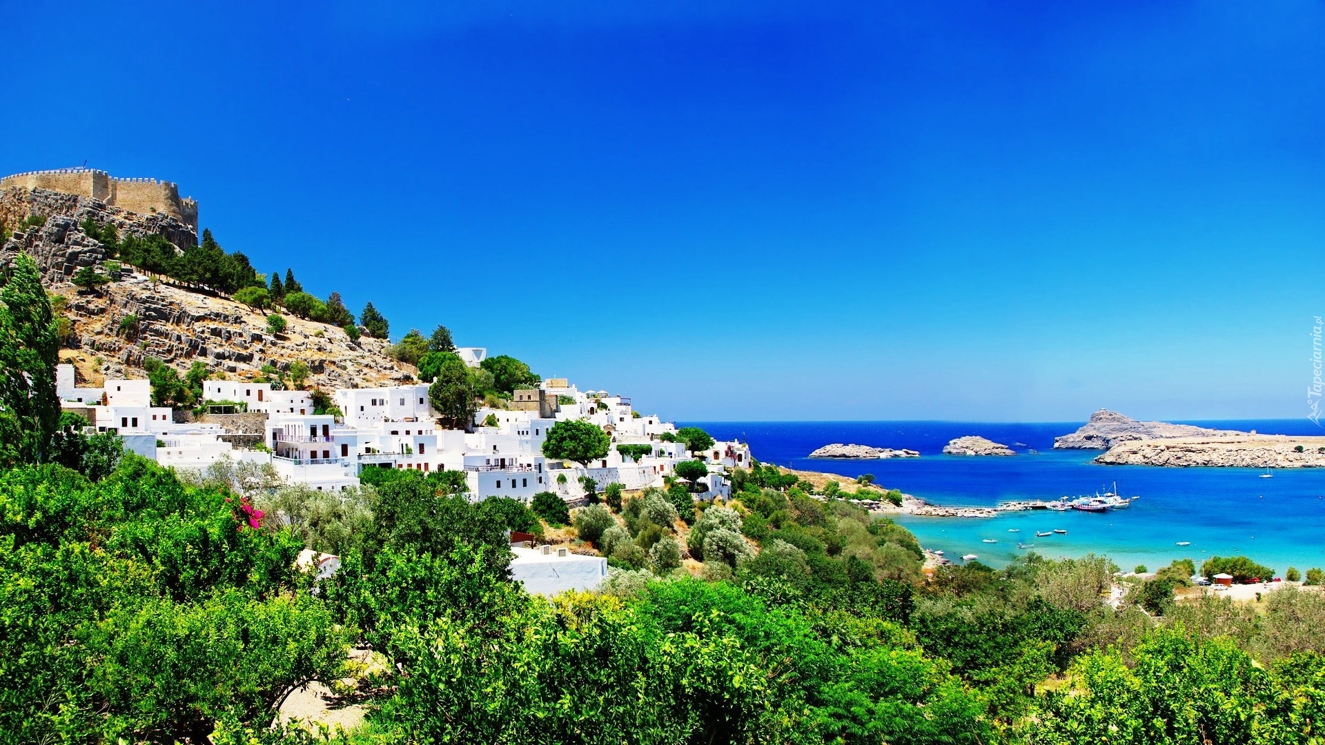 Edytor tapety: Domy, Morze, Wyspa, Rodos, Grecja