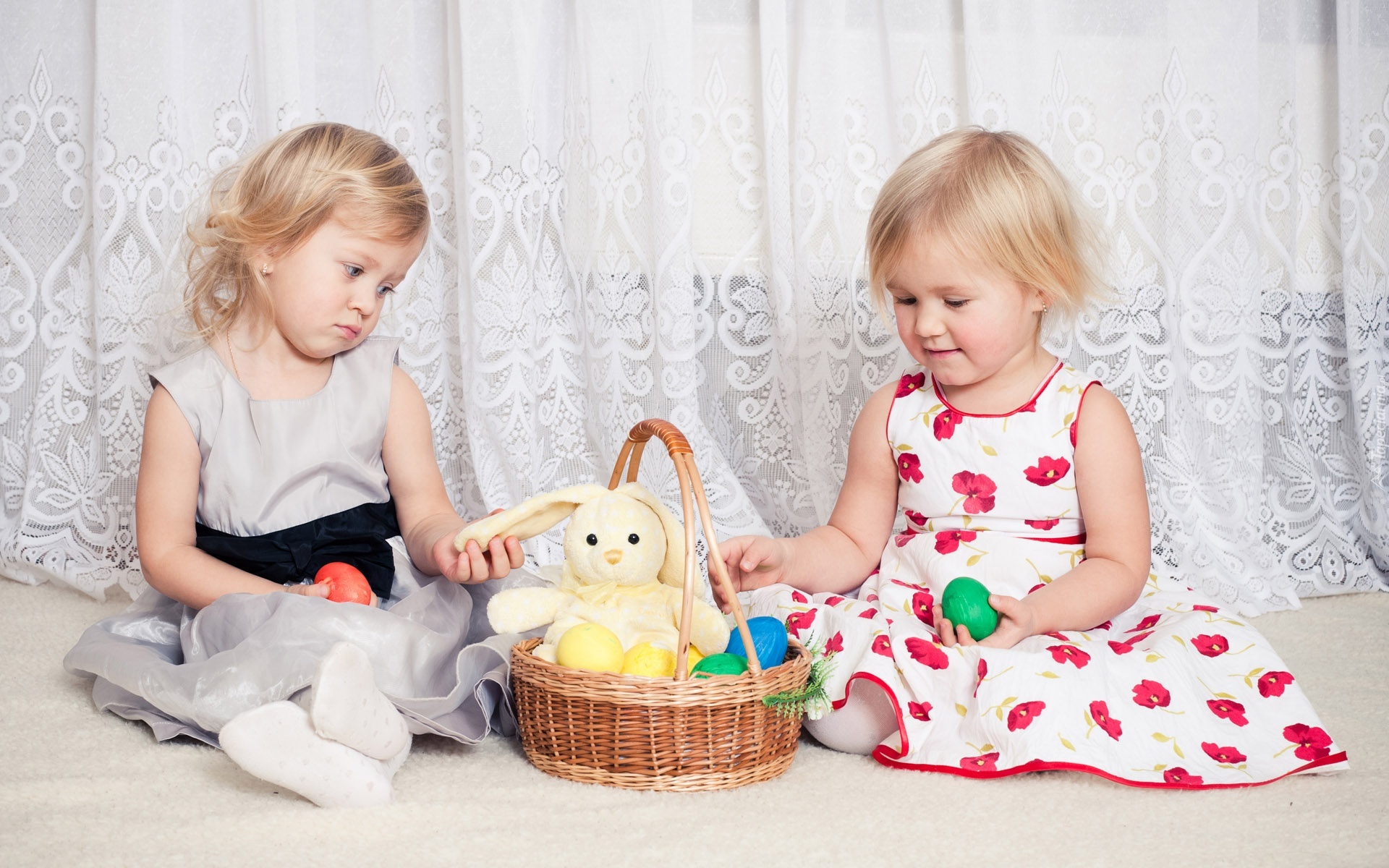 Edytor tapety: Dziewczynki, Kosz, Pisanki, Pluszak