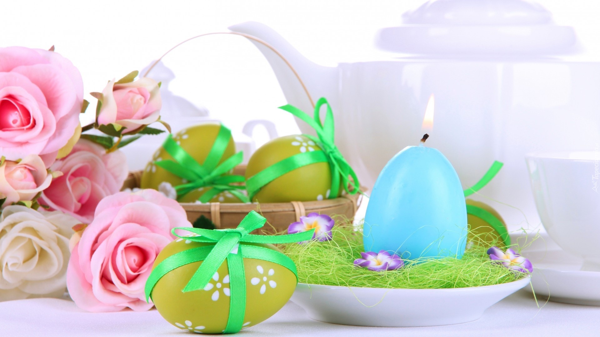 Edytor tapety: Kompozycja, Kosz, Pisanki, Róże, Świeca
