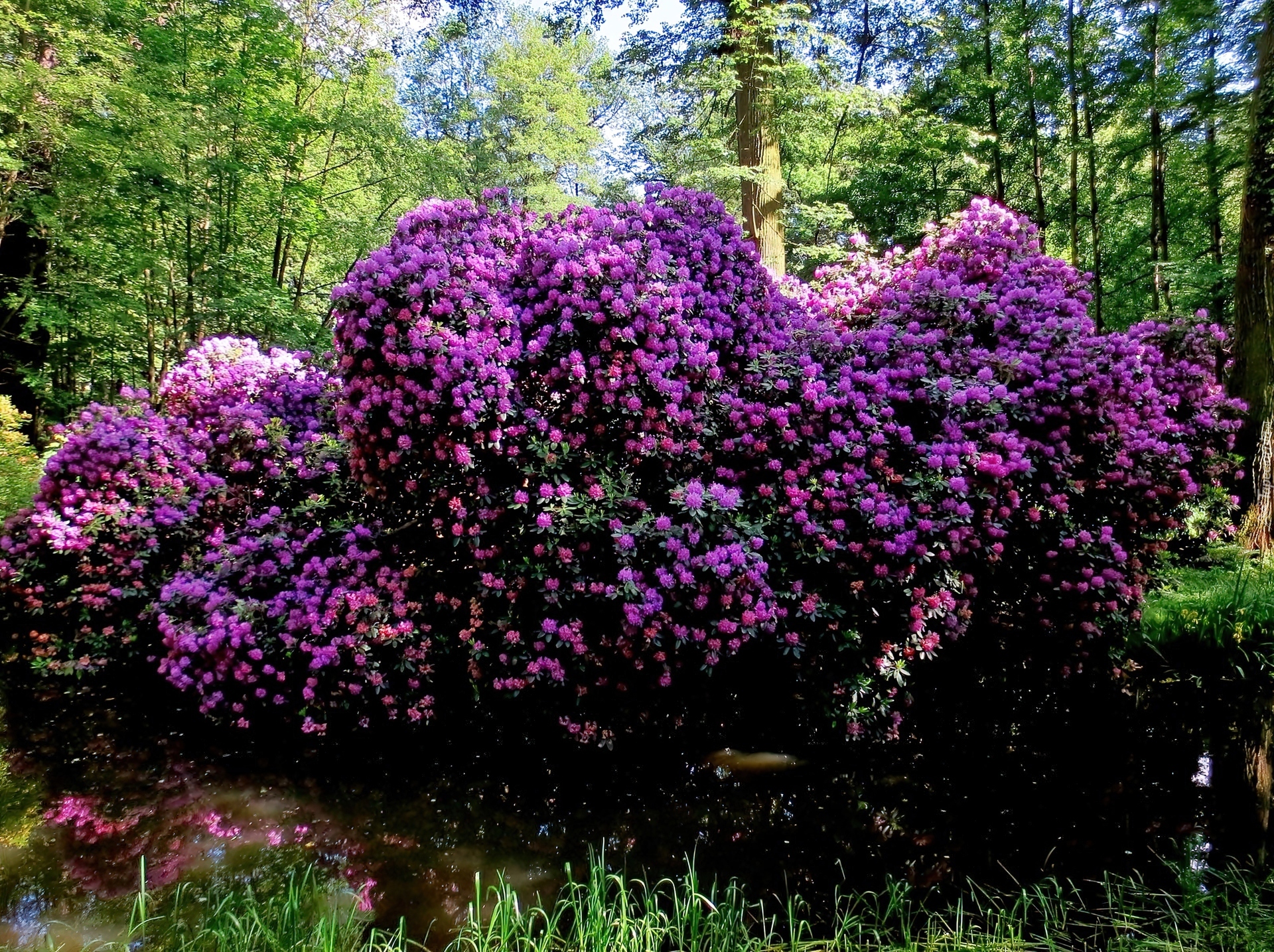 Edytor tapety: Park, Zamkowy, Moszna, Staw, Rododendrony, Przebijające, Światło
