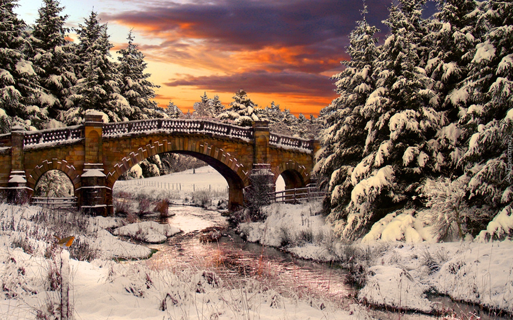 Edytor tapety: Zima, Stary, Most, Rzeka