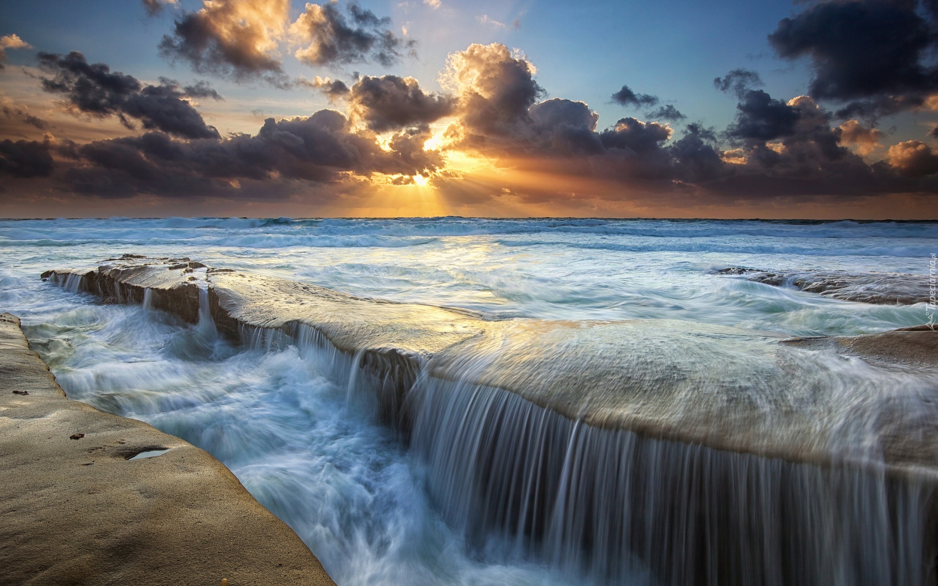 Edytor tapety: Morze, Fale, Chmury, Zachód Słońca
