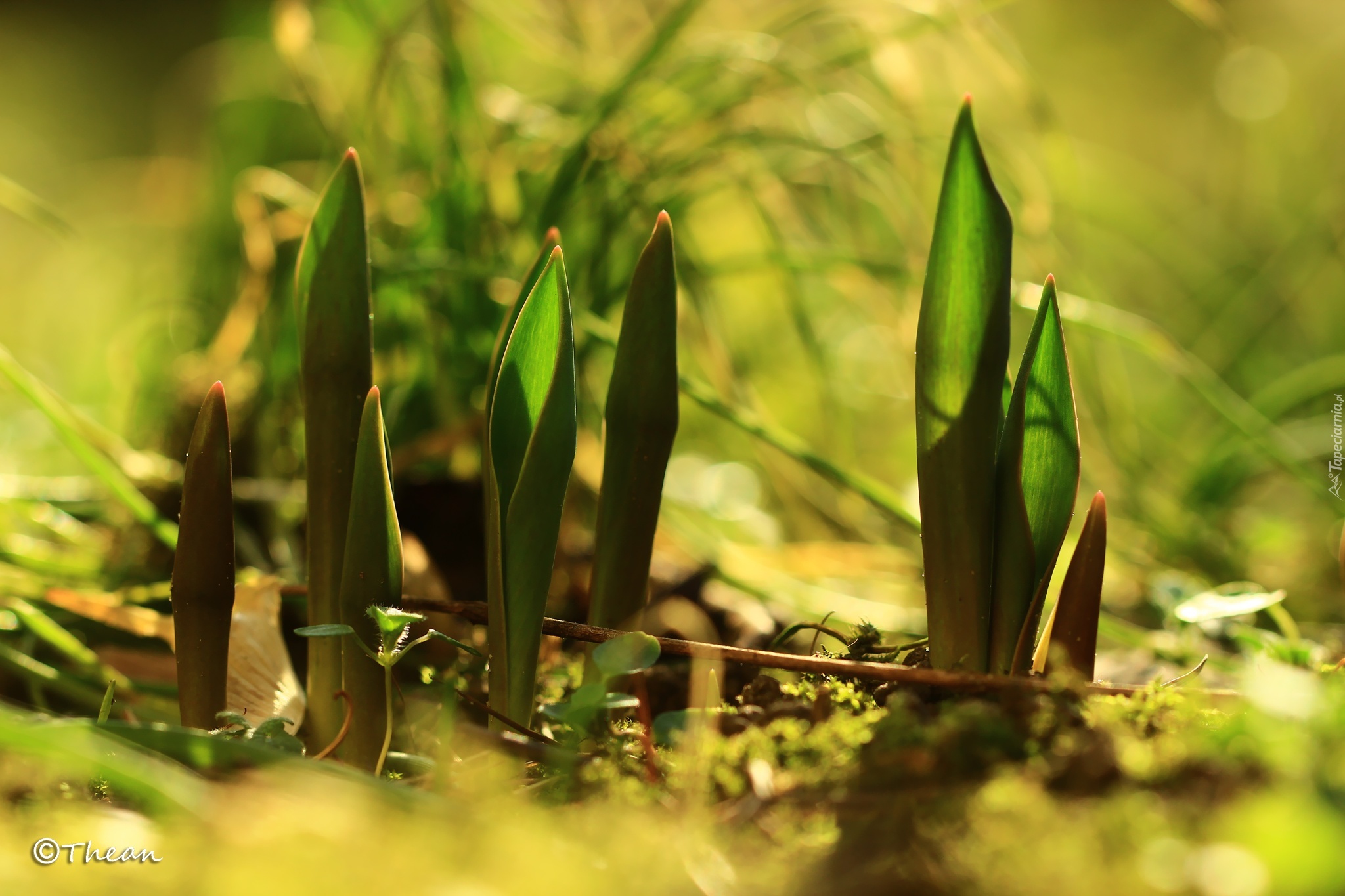 Edytor tapety: Młode, Liście, Tulipanów, Wiosna