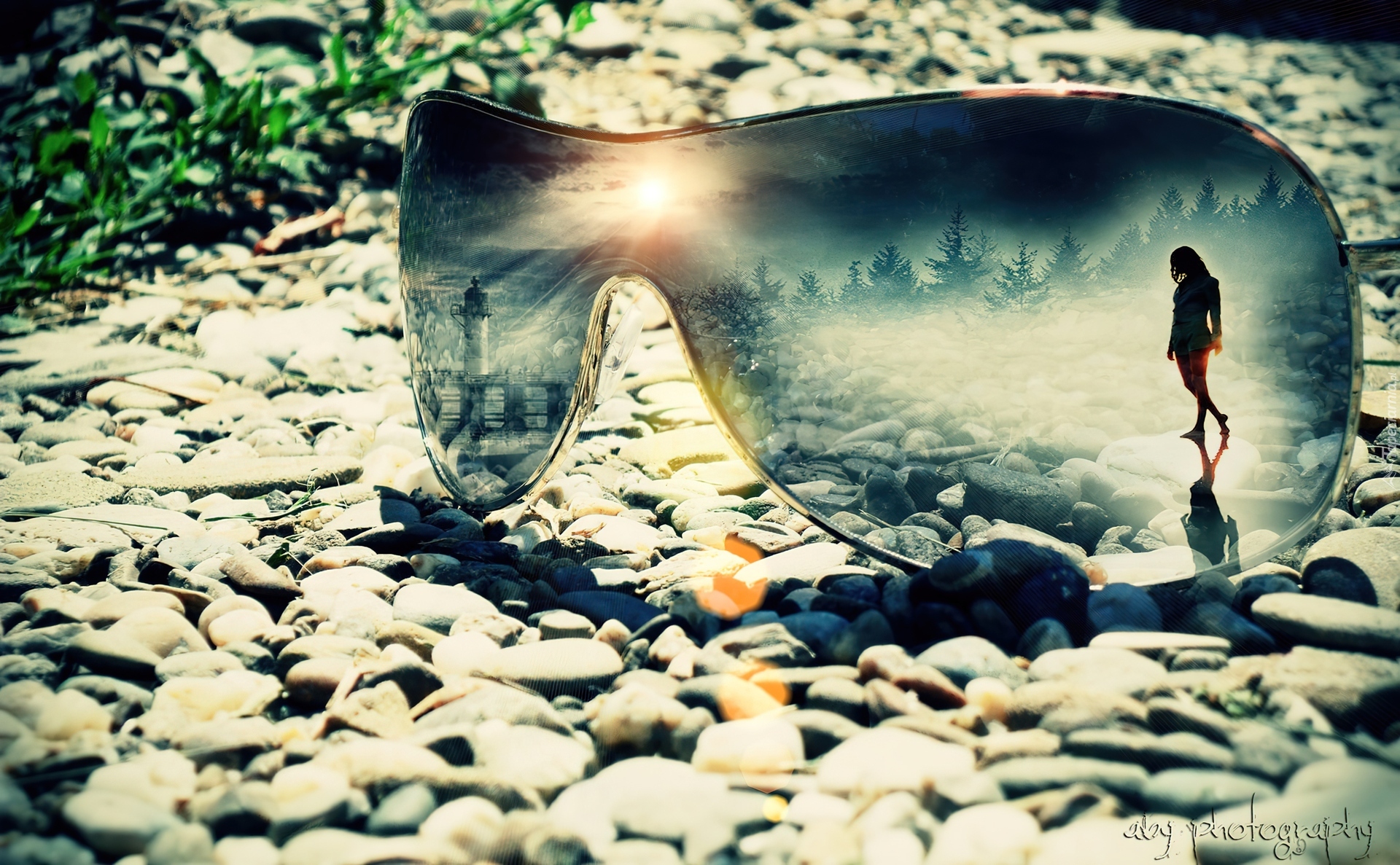 Edytor tapety: Kamienie, Okulary, Odbicie, Słońca, Drzew, Kobiety