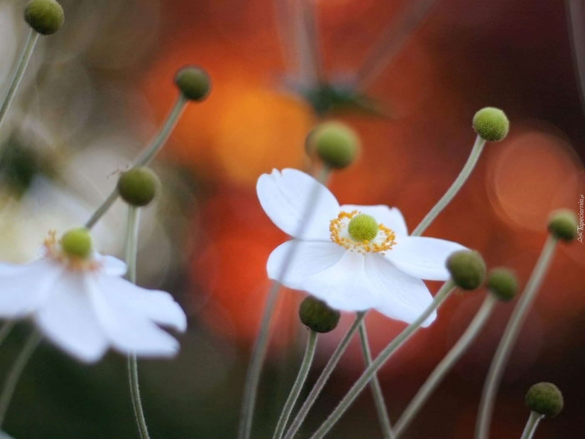 Edytor tapety: Białe, Kwiaty, Zawilec chiński, Zielone, Pączki