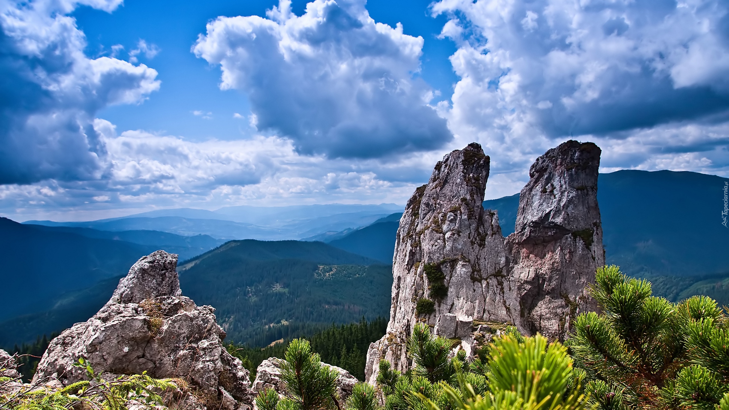 Edytor tapety: Skały, Góry, Lasy, Chmury