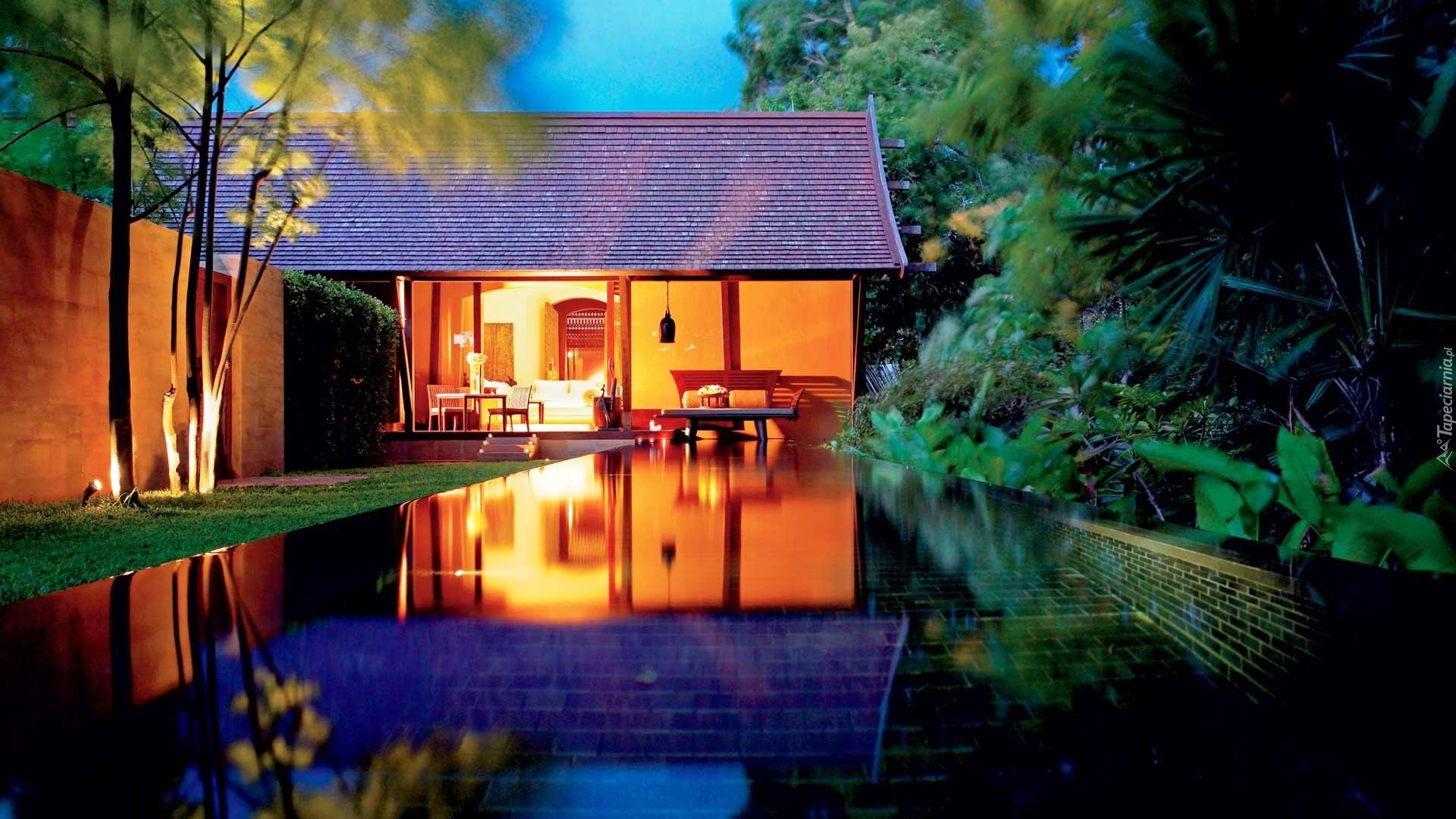 Edytor tapety: Dom, Basen, Odbicie, Noc